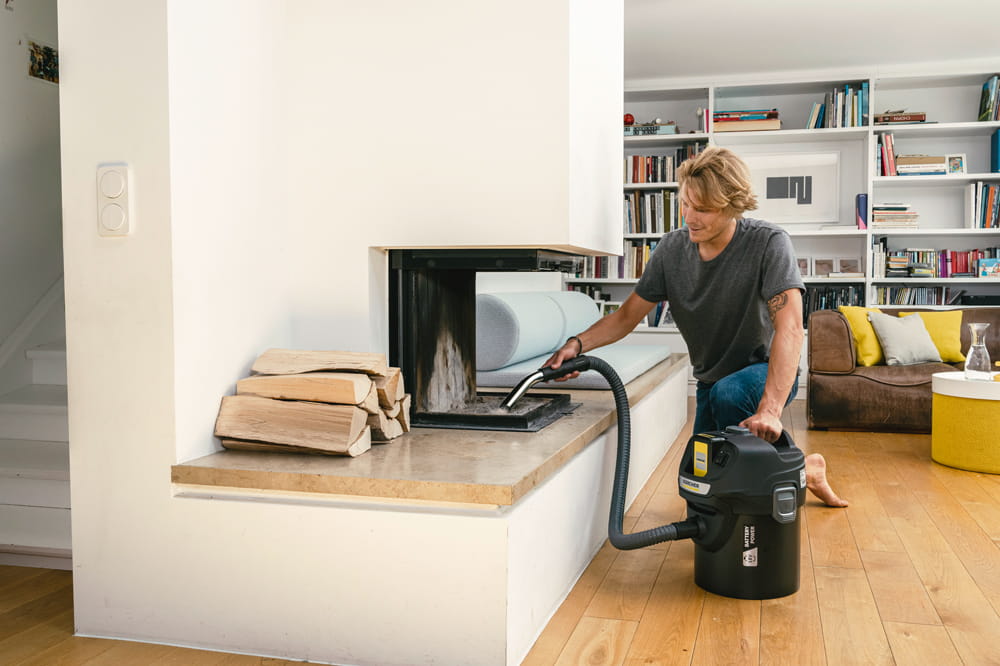 Odkurzacz AD 2 Battery to bezprzewodowy odkurzacz kominkowy zasilany akumulatorem 18V. Urządzenie posiada dużą siłę ssania oraz jest wyposażone w technologię oczyszczania filtra ReBoost, poprzez wciśnięcie przycisku.