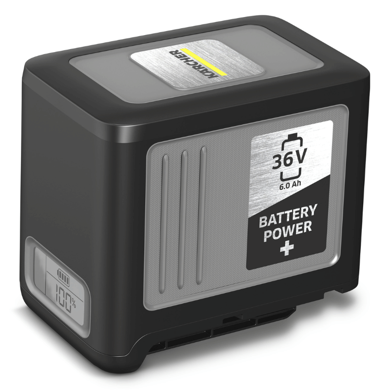 Akumulator 36V 6,0 AH to litowo-jonowa bateria z wyświetlaczem LCD pokazującym stan naładowania oraz czas pozostałej pracy. Bateria kompatybilna jest ze wszystkimi urządzeniami Karcher Battery Power+ 36V. W prezentowanej ofercie do zakupienia jest sam akumulator, bez ładowarki oraz urządzeń.