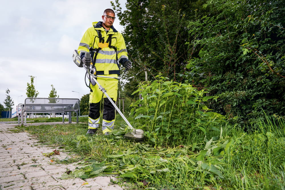 Podkaszarka dzięki zastosowaniu napędu akumulatorowego charakteryzuje się znacznie niższym ciśnieniem akustycznym niż porównywalne podkaszarki spalinowe. Sprawdza się znakomicie w obszarach wrażliwych na hałas oraz ma neutralny wpływ na środowisko, ponieważ nie emituje spalin. Silnik bezszczotkowy, w który wyposażone jest urządzenie, emituje niskie drgania, co przekłada się na wysoki komfort pracy.
