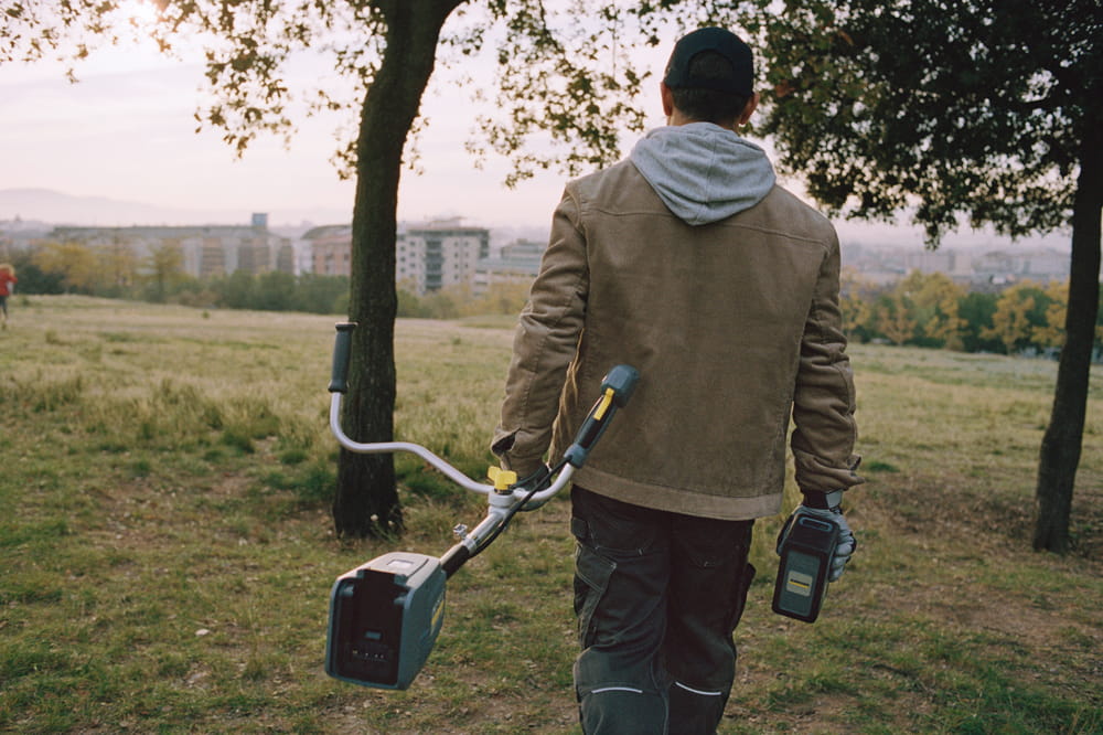 Urządzenie posiada indywidualnie regulowany, ergonomiczny, podwójny uchwyt który idealnie leży w dłoniach i jest doskonale wyważony, co znacząco ułatwia obsługę podkaszarki i zapobiega zmęczeniu rąk. Charakteryzuje się niższym poziomem wibracji, w porównaniu do podkaszarek spalinowych.