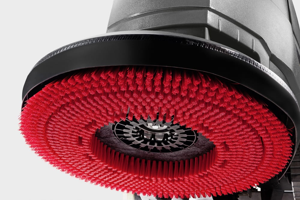 Głowica ze szczotką tarczową charakteryzuje się bardzo wysoką skutecznością czyszczenia równych i gładkich posadzek. Duża pojemność zbiornika zapewnia długie okresy pracy bez przerw. Szorowarkę wyposażono w głowicę szorującą w popularnym rozmiarze D 51.