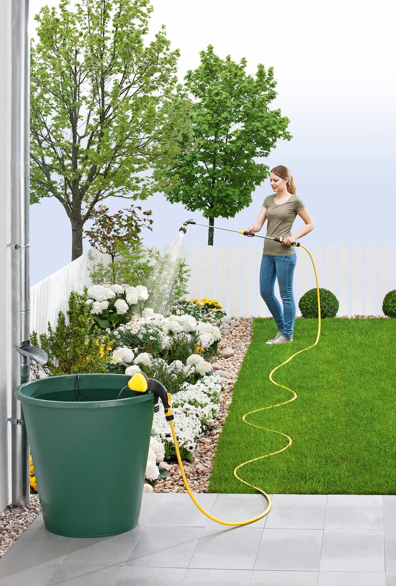 Pompa BP 1 Barrel Set to proste i wygodne rozwiązanie które z powodzeniem zastąpi podlewanie roślin za pomocą konewki. Dzięki elastycznej klamerce pompę można zamocować na krawędzi beczki, a włącznik pływakowy z powodzeniem reguluje pracę pompy w zależności od wysokości lustra wody w beczce.
