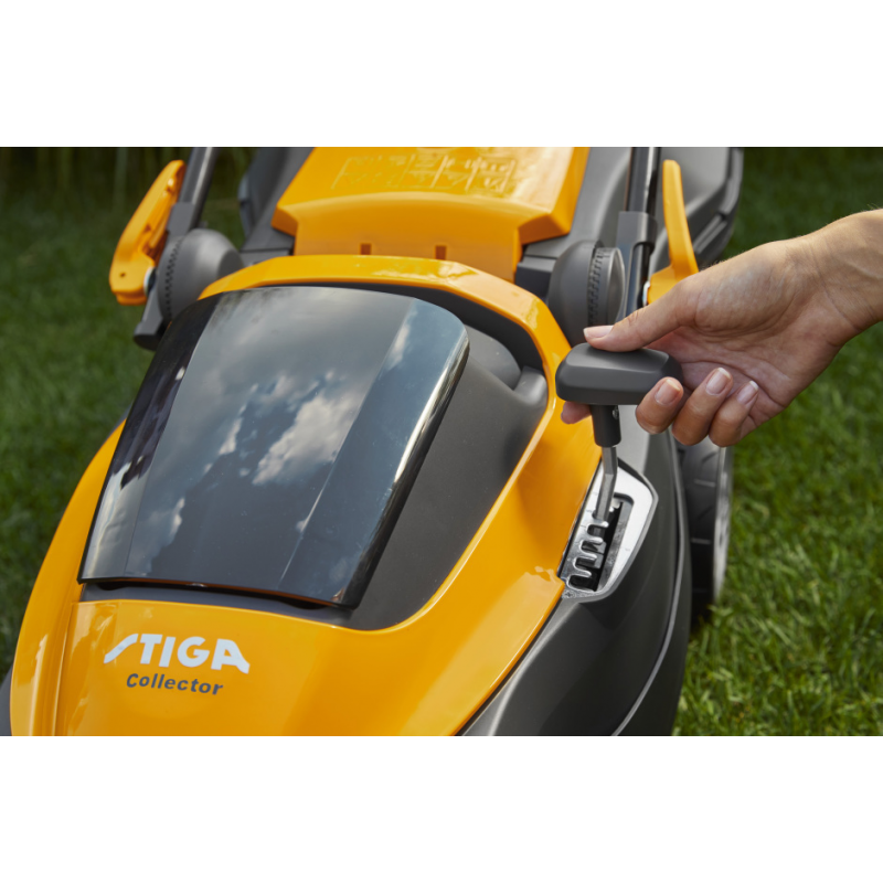 35-litrowy kosz w STIGA 136e zminimalizuje czas spędzony przy opróżnianiu trawy i sprawi większą radość przy tnięciu trawnika.