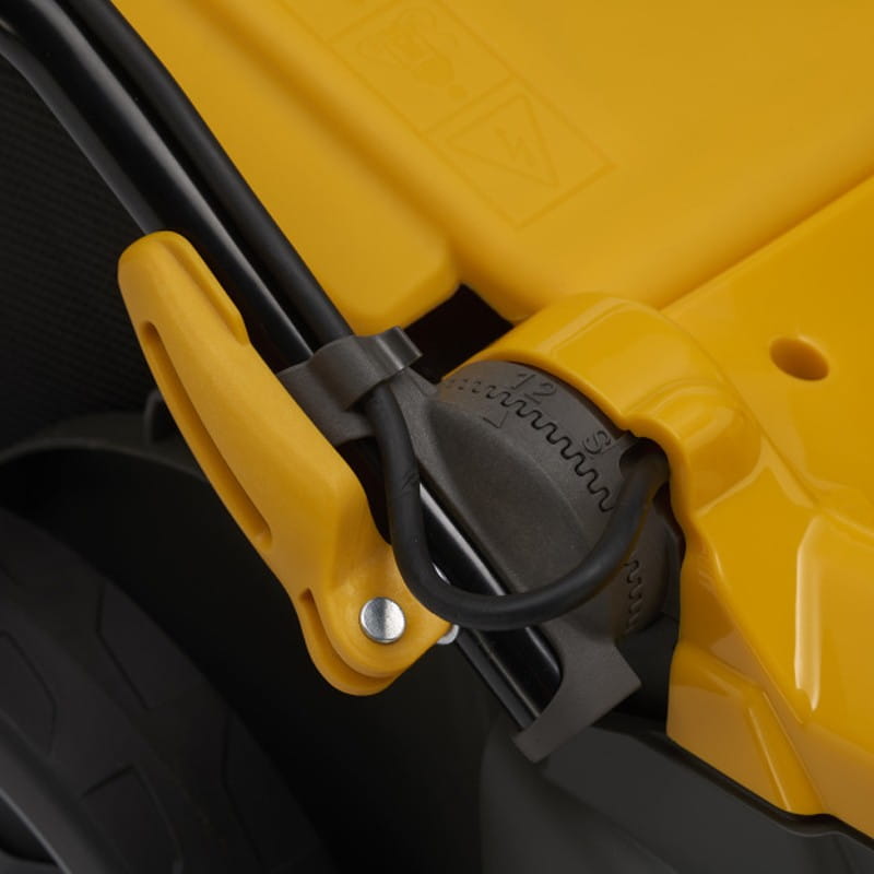 Przy pomocy dźwigni, masz możliwość ustawić wysokość koszenia w pięciu pozycjach (od 25 mm do 75 mm).
