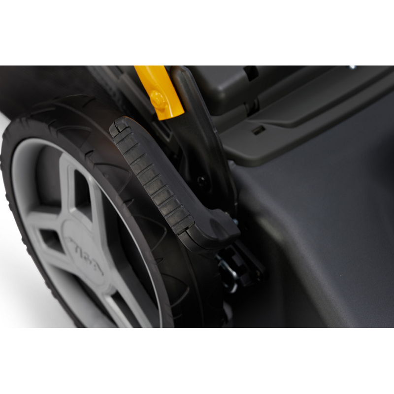 Stiga 553 SE posiada 6 wysokości koszenia oraz centralną dźwignię regulacji wysokości koszenia.