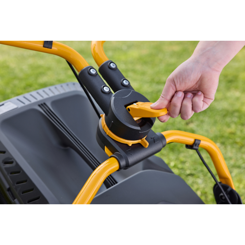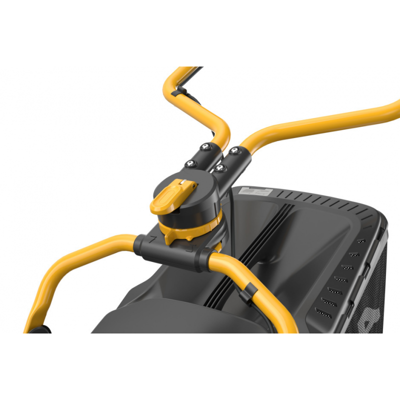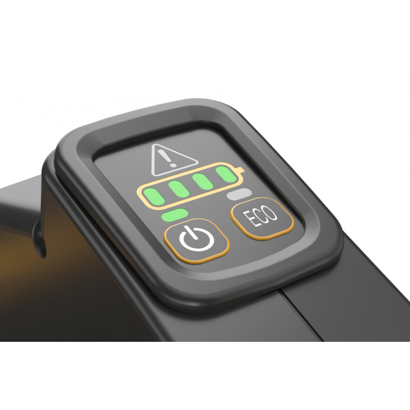 Kosiarka akumulatorowa została wyposażona w panel sterowania na kierownicy, która zapewnia dodatkową kontrolę. Możesz sprawdzić żywotność akumulatora podczas pracy kosiarki i w razie potrzeb oszczędzania energii przełączyć na tryb ECO.