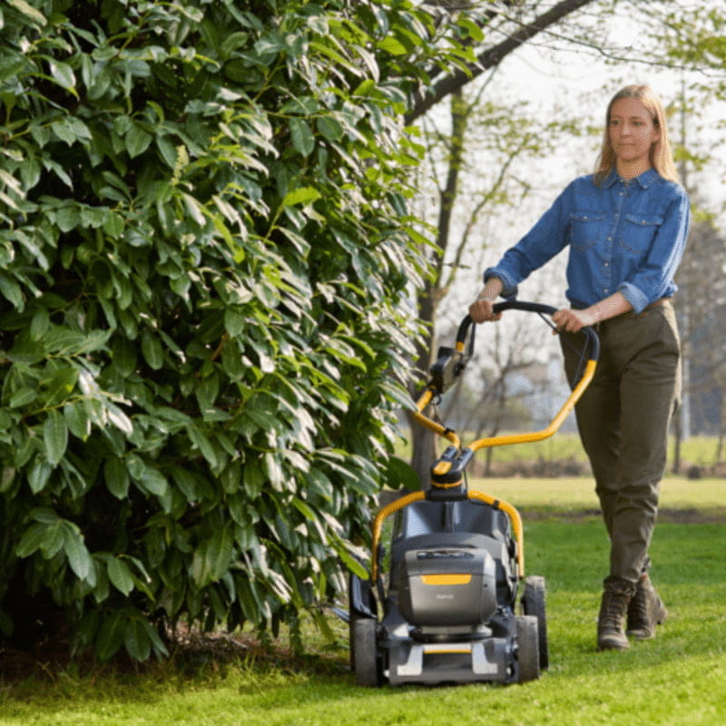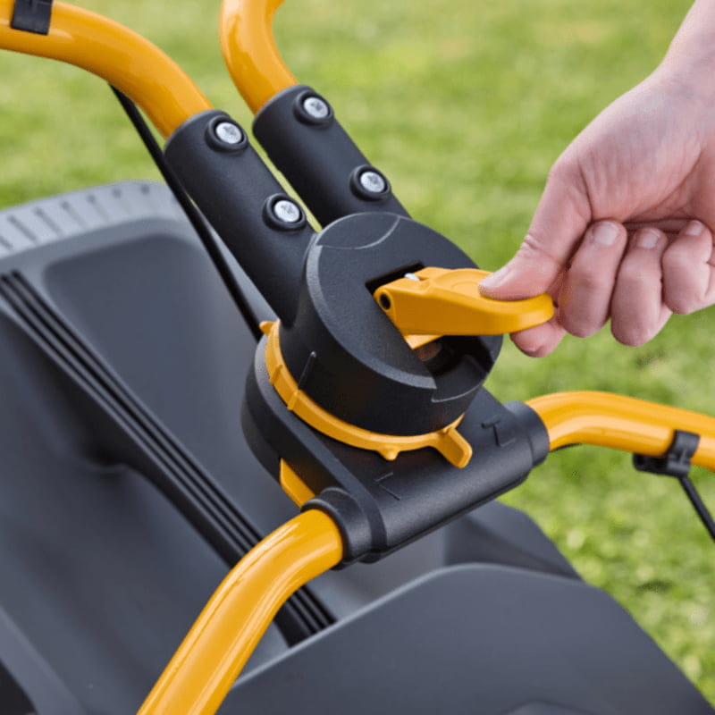 Kosiarka Stiga Combi 753e V jest nie tylko potężna, ale również komfortowa w użytkowaniu. Ergonomiczna kierownica Fulcrum z miękkim uchwytem oraz możliwość jej regulacji i składania znacząco ułatwiają pracę i przechowywanie urządzenia. Duże koła na łożyskach kulkowych zapewniają łatwe prowadzenie kosiarki nawet na nierównym terenie.