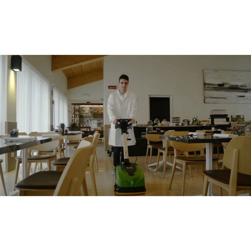 Moc czyszczenia szczotki talerzowej i doskonałe suszenie we wszystkich kierunkach sprawiają, że ten automat jest idealny do czyszczenia małych i średnich obszarów. Baterie w technologii LI – ION dają możliwość szybkiego ładowania (2 akumulatory ładowane naprzemiennie), co nie przerywa pracy urządzenia.