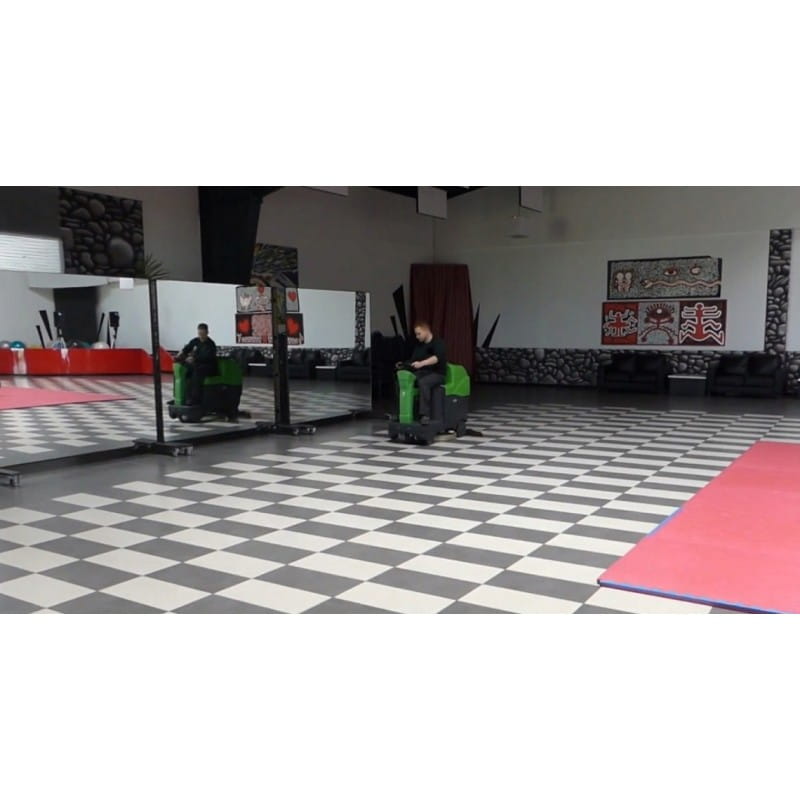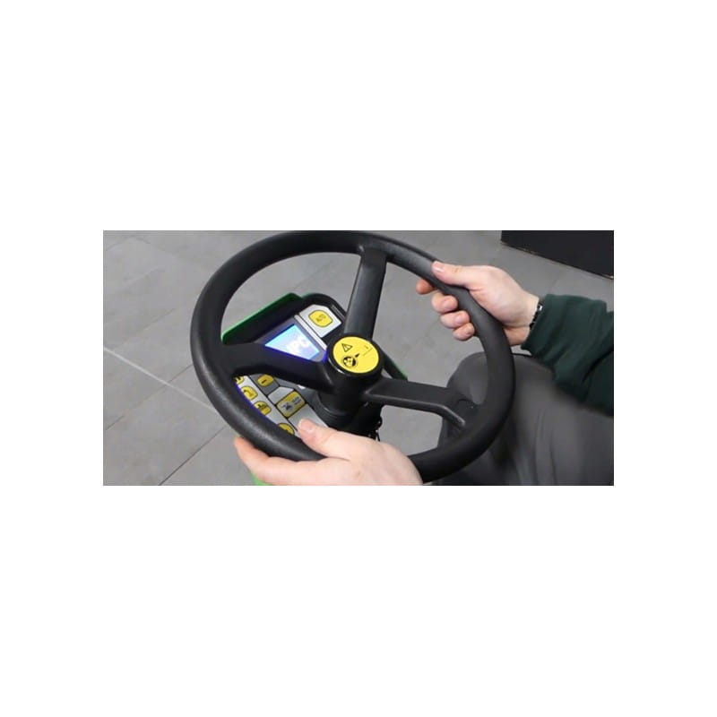 Ergonomia maszyny i siedzenia zapewnia wygodę operatora, a dzięki tym cechom ta profesjonalna szorowarka nadaje się do wielu różnych rodzajów podłóg, w tym do płytek twardych, żywicznych i porcelanowych.