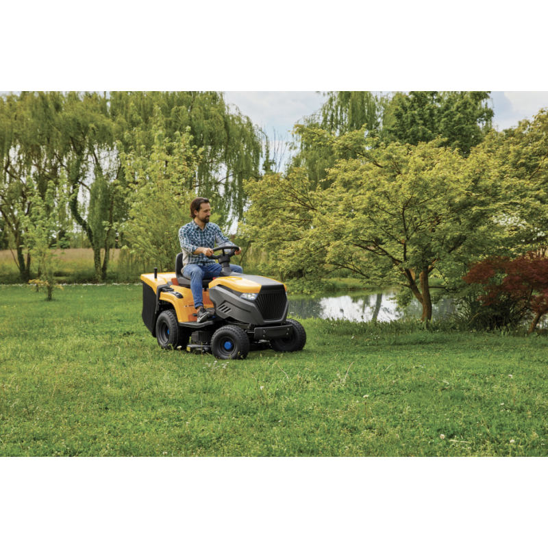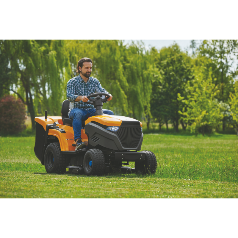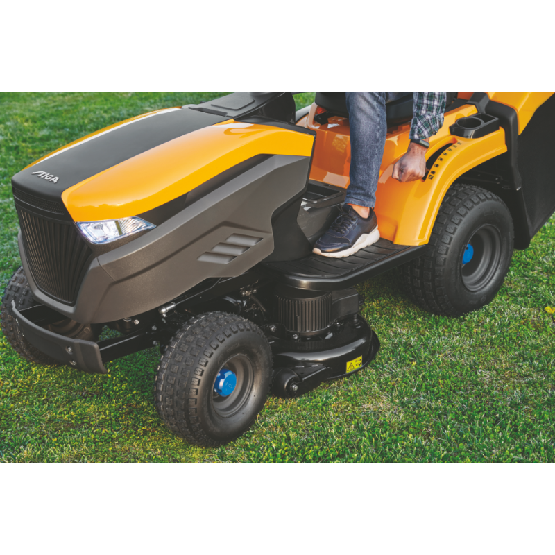 Silnik w Stiga 584e umożliwia jazdę po ogrodzie z maksymalną prędkością 9km/h wraz z płynną regulacją prędkości!
