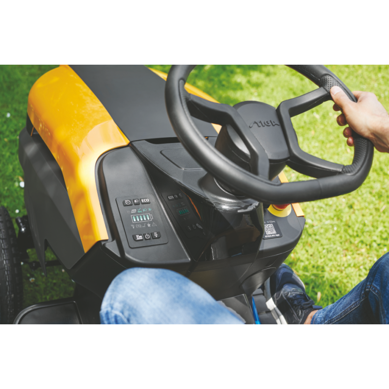 Stiga Estate 584e posiada wiele innowacyjnych funkcji na desce rozdzielczej, które ułatwią jeszcze bardziej z korzystania sprzętu m.in. tryb eco, tempomat czy reflektory LED z traktorem również możesz połączyć się przez aplikacje mobilną lub przez bluetooth!