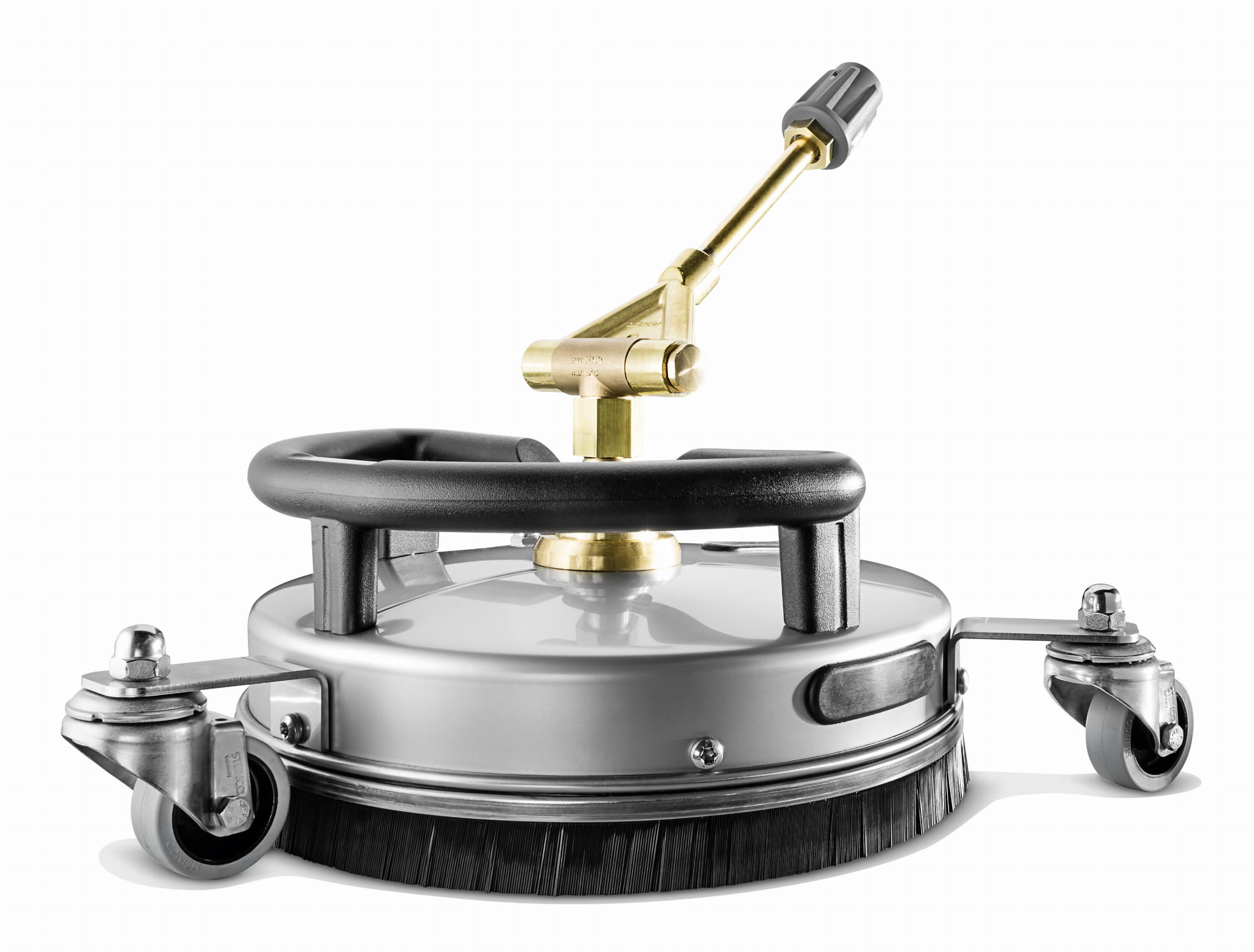 | FR 30 Me – przystawka do czyszczenia powierzchni płaskich (kompatybilna z urządzeniami HD i HDS) Przeznaczone do mycia powierzchni płaskich: ściany, drzwi, bramy garażowe. Obracająca się belka i zestaw dysz Power uzyskują wydajność powierzchniową, która jest do 10 razy większa od uzyskanej metodami tradycyjnymi. Wykonane ze stali szlachetnej, łożyskowanie ceramiczne. Wysokiej jakości myjka do powierzchni FR 30 ME odporna na działanie gorącej wody z obudową ze stali nierdzewnej o szerokości roboczej 300 mm, idealna do czyszczenia wewnętrznego, np. w przemyśle spożywczym. Urządzenie jest wyposażone w podwójne łożyska ceramiczne oraz niepozostawiające śladów kółka wahadłowe. Uwaga! Do poprawnego działania przystawki należy dokupić odpowiednie dysze. Nie masz pewności jaką dyszę wybrać – zadzwoń i zapytaj pod numer +48 22 379-54-12 | ![]() |