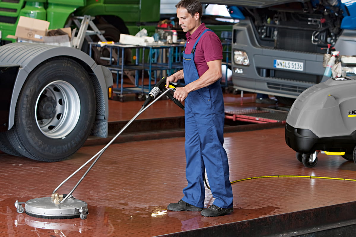 | FR 50 – przystawka do czyszczenia powierzchni płaskich (kompatybilna z urządzeniami HD, HDS i HDC starszej generacji) Obracająca się belka z dyszami Power jest 10 razy wydajniejsza w czyszczeniu, niż tradycyjne metody usuwania zabrudzeń. Przystawka została wykonana ze stali szlachetnej, łożyskowana ceramicznie, wyposażona w mechanizm do zasysania środka czyszczącego oraz zintegrowany zawór środka czyszczącego. Wysokiej jakości myjka do powierzchni FR 50 jest odporna na działanie gorącej wody i posiada obudowę ze stali nierdzewnej o szerokości roboczej 500 mm, idealna do czyszczenia dużych obszarów. Urządzenie jest wyposażone w zintegrowany, niskociśnieniowy system dozowania detergentu oraz niepozostawiające śladów kółka wahadłowe. Posiadasz nowy model urządzenia HD/HDS? Wybierz tą przystawkę (2.111-023.0). Pistolet wysokociśnieniowy ukazany na zdjęciu poglądowym nie jest elementem wyposażenia zestawu przystawki. Uwaga! Do poprawnego działania przystawki należy dokupić odpowiednie dysze. Nie masz pewności jaką dyszę wybrać – zadzwoń i zapytaj pod numer +48 22 379-54-12 | ![]() |