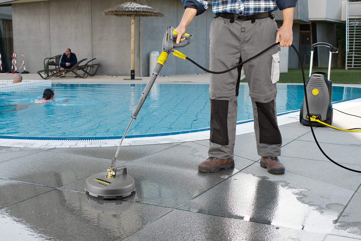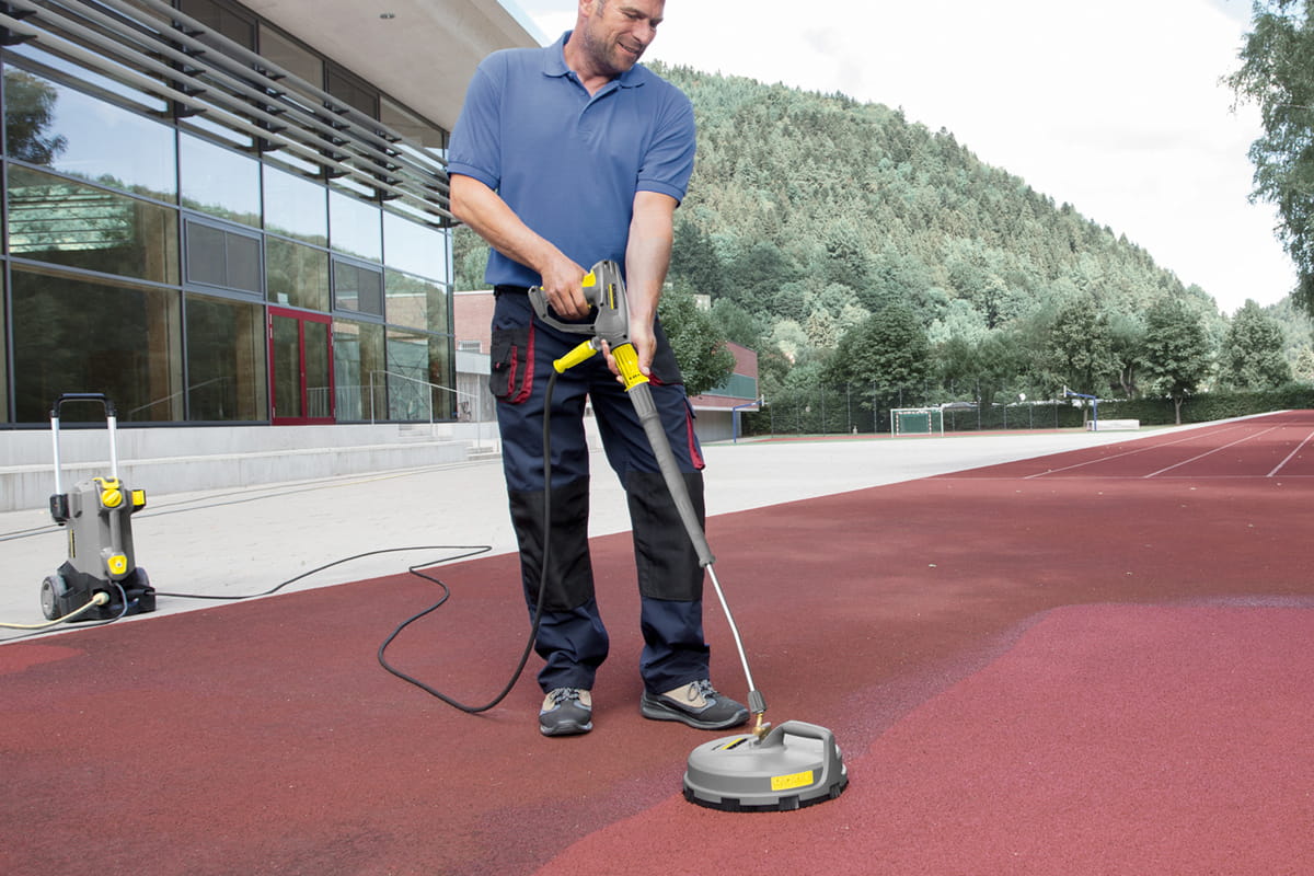 | FR TR Classic – przystawka do czyszczenia powierzchni płaskich (kompatybilna z urządzeniami HD) FR TR Classic to podstawowy model myjki do czyszczenia powierzchni płaskich. Można z jego pomocą pracować wewnątrz i na zewnątrz budynków bez chlapania. Urządzenie charakteryzuje się imponującym ciśnieniem roboczym do 150 barów oraz przepływem wody na poziomie 600 l/h. Uwaga! Przystawka kompatybilna z opatentowanym złączem EASY!Lock znajdującym się w nowym wyposażeniu myjek HD. Posiadając starego typu osprzęt (dysza, lanca, pistolet – M18), możesz zakupić tą samą przystawkę, ale z dedykowanym gwintem FR Classic (2.643-476.0) . Uwaga! Do poprawnego działania przystawki należy dokupić odpowiednie dysze. Nie masz pewności jaką dyszę wybrać – zadzwoń i zapytaj pod numer +48 22 379-54-12 | ![]() |