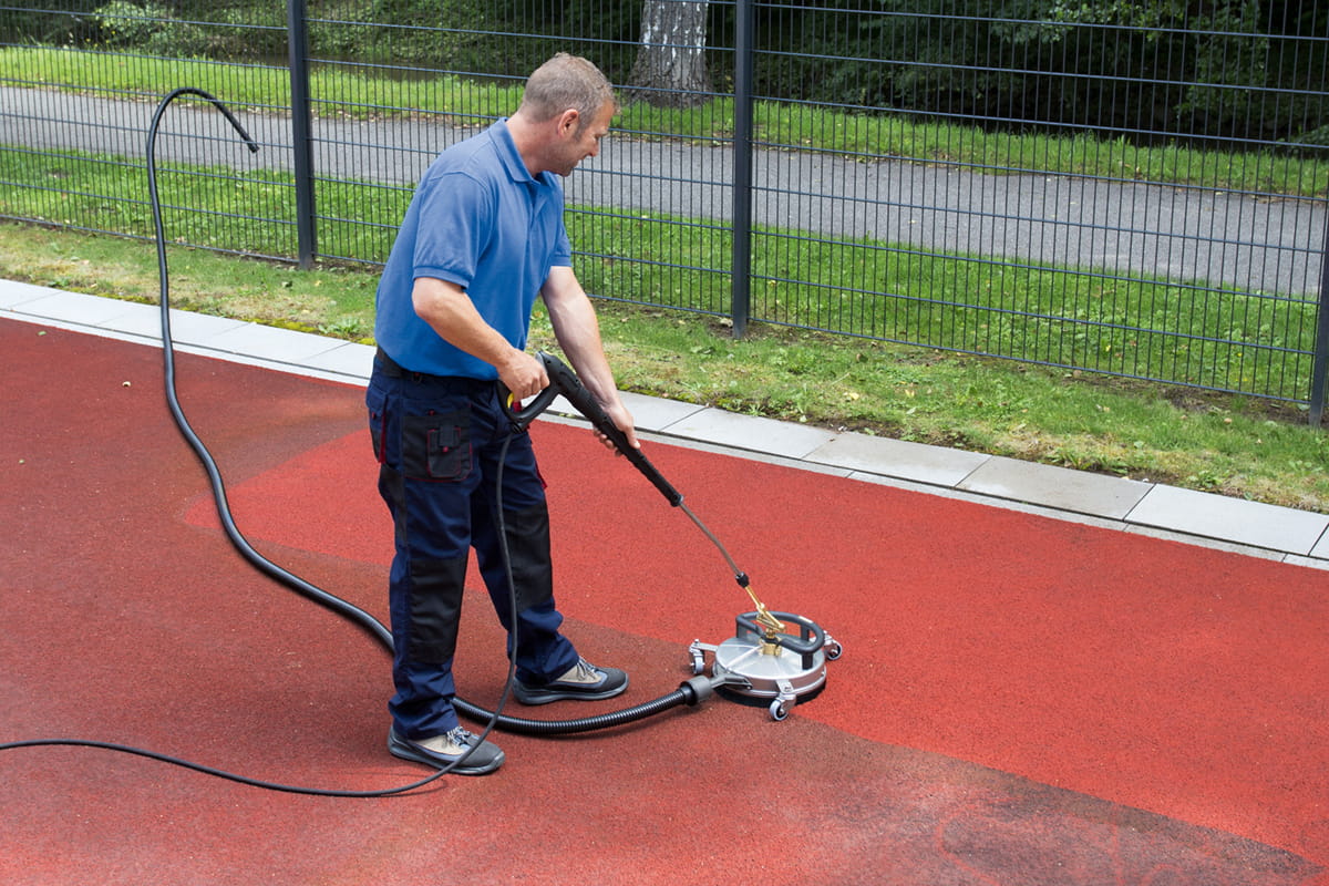 | FRV 30 ME – przystawka do czyszczenia powierzchni płaskich (kompatybilna z urządzeniami HD i HDS starszej generacji) Przystawka do powierzchni płaskich wykonana została ze stali nierdzewnej. Umożliwia czyszczenie gorącą wodą o temperaturze do 85°C. Dzięki zintegrowanemu, automatycznemu odsysaniu brudnej wody, czyszczenie powierzchni jest wydajniejsze zarówno wewnątrz, jak i na zewnątrz budynków. FRV 30 ME jest wyposażona w odporny na wysokie temperatury wąż ssący o długości 7,5m, wykonany z poliuretanu. Dodatkową zaletą są niepozostawiające śladów rolki sterujące i podwójne łożysko ceramiczne. Wąż do odsysania jest elementem wyposażenia przystawki. Dołączany w kartonie z przystawką FRV 30 Me. Ukazana na zdjęciu lanca wraz z pistoletem nie jest elementem zestawu przystawki FRV. Uwaga! Do poprawnego działania przystawki należy dokupić odpowiednie dysze. Nie masz pewności jaką dyszę wybrać – zadzwoń i zapytaj pod numer +48 22 379-54-12 | ![]() |
