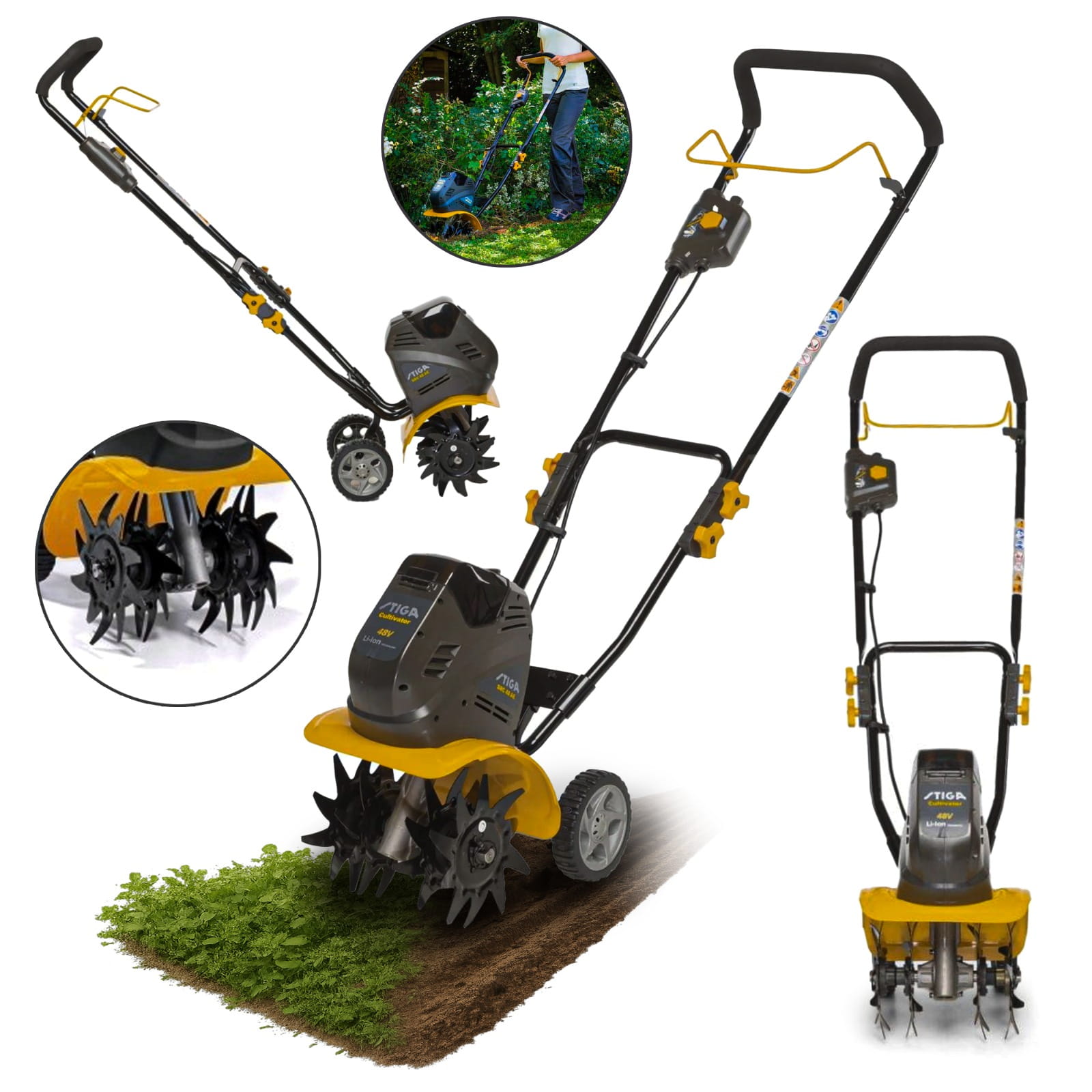 STIGA SRC 48 AE to praktyczna, cicha i ekologiczna glebogryzarka stworzona z myślą o pielęgnacji przydomowych ogrodów i działek. Zasilana wydajnym akumulatorem 48 V z serii PowerPack (do dokupienia osobno), pozwala na wygodne spulchnianie, rozdrabnianie i napowietrzanie gleby – bez kabli i bez emisji spalin.