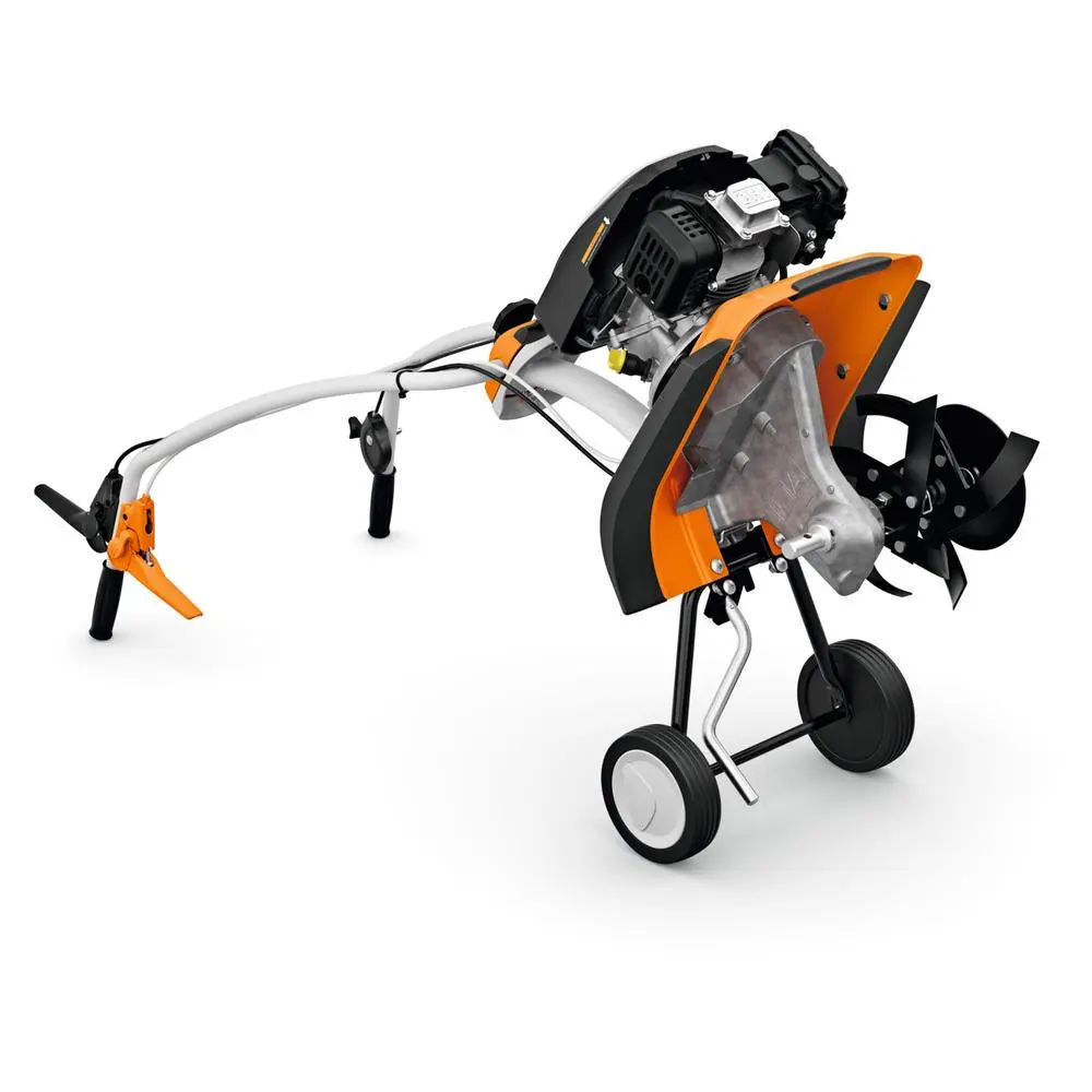 Glebogryzarka Stihl MH 445.1 R jest również bardzo łatwa w konserwacji. Możliwość przechylenia urządzenia na koła transportowe umożliwia łatwy dostęp do noży tnących, co znacznie ułatwia ich czyszczenie i wymianę. Dzięki temu urządzenie zachowuje swoją wydajność przez długi czas, a Ty oszczędzasz czas i wysiłek podczas jego konserwacji.