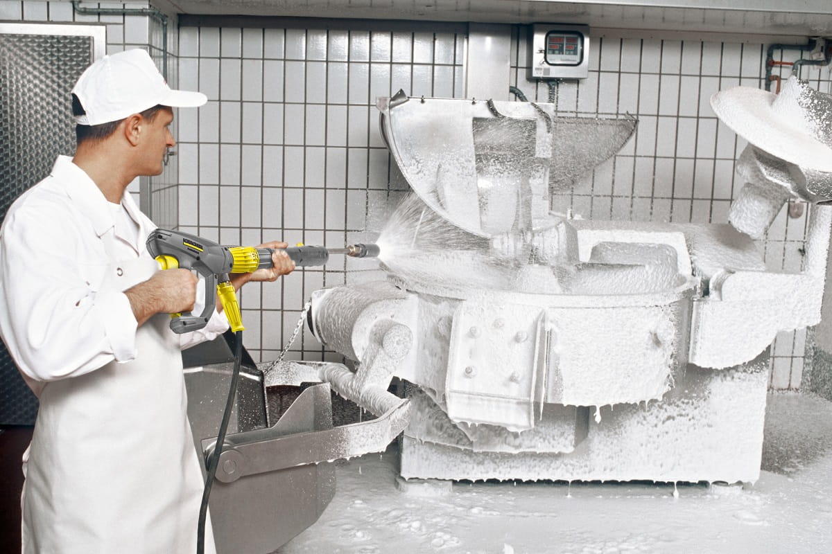 Niezawodny i solidny będący jednocześnie łatwy w użyciu. Klasa specjalistyczna HD Food nadaje do pracy w miejscach o podwyższonych standardach higieny. Gwarantuje również przestrzeń do przechowywania wszystkich niezbędnych akcesoriów. Dostęp do pompy wysokociśnieniowej jak i do układów elektrycznych można uzyskać szybko i łatwo.