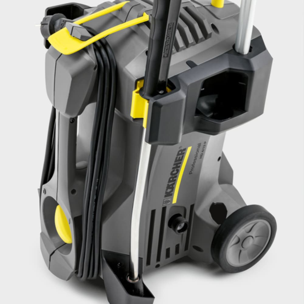 Urządzenie HD 5/15 C Plus to kompaktowe i mobilne rozwiązanie do zastosowań wymagających dużej elastyczności. Dzięki możliwości pracy w pozycji pionowej i poziomej, jest idealne do miejsc o ograniczonej przestrzeni. Wyposażone w pistolet EASY!Force z obrotową lancą oraz system mocowania EASY!Lock, umożliwia szybkie i wygodne użytkowanie. Solidna mosiężna głowica pompy oraz automatyczny system redukcji ciśnienia zapewniają długotrwałą eksploatację. Duży filtr wody chroni pompę przed zanieczyszczeniami, a możliwość przechowywania lancy i pistoletu w pozycji pionowej zwiększa wygodę użytkowania.