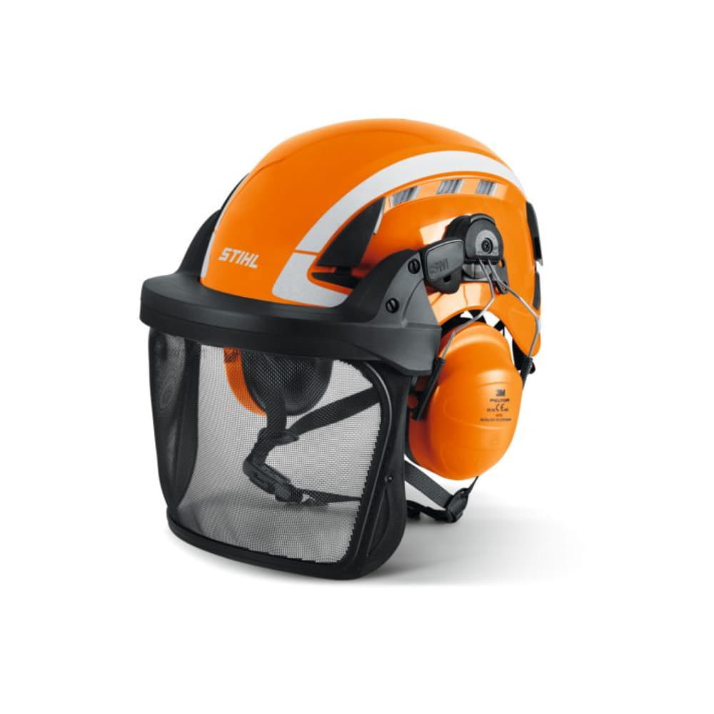 Hełm STIHL ADVANCE X-Climb jest idealny zarówno do zastosowań arborystycznych, jak i do pozyskiwania drewna z poziomu ziemi. Oferuje wysoki komfort noszenia, duże otwory wentylacyjne i wyważoną konstrukcję. Wyposażony w 4-punktowy pasek podbródkowy z innowacyjnym zamkiem magnetycznym i wygodną regulacją. Odblaskowe naklejki na całym obwodzie hełmu zapewniają dobrą widoczność i bezpieczeństwo. Czasza wykonana z odpornego na promieniowanie UV materiału ABS. Wizjer z trwałego nylonu. Nauszniki z wysoką izolacją akustyczną SNR 28. Zgodność z normami EN 397, EN 12492.