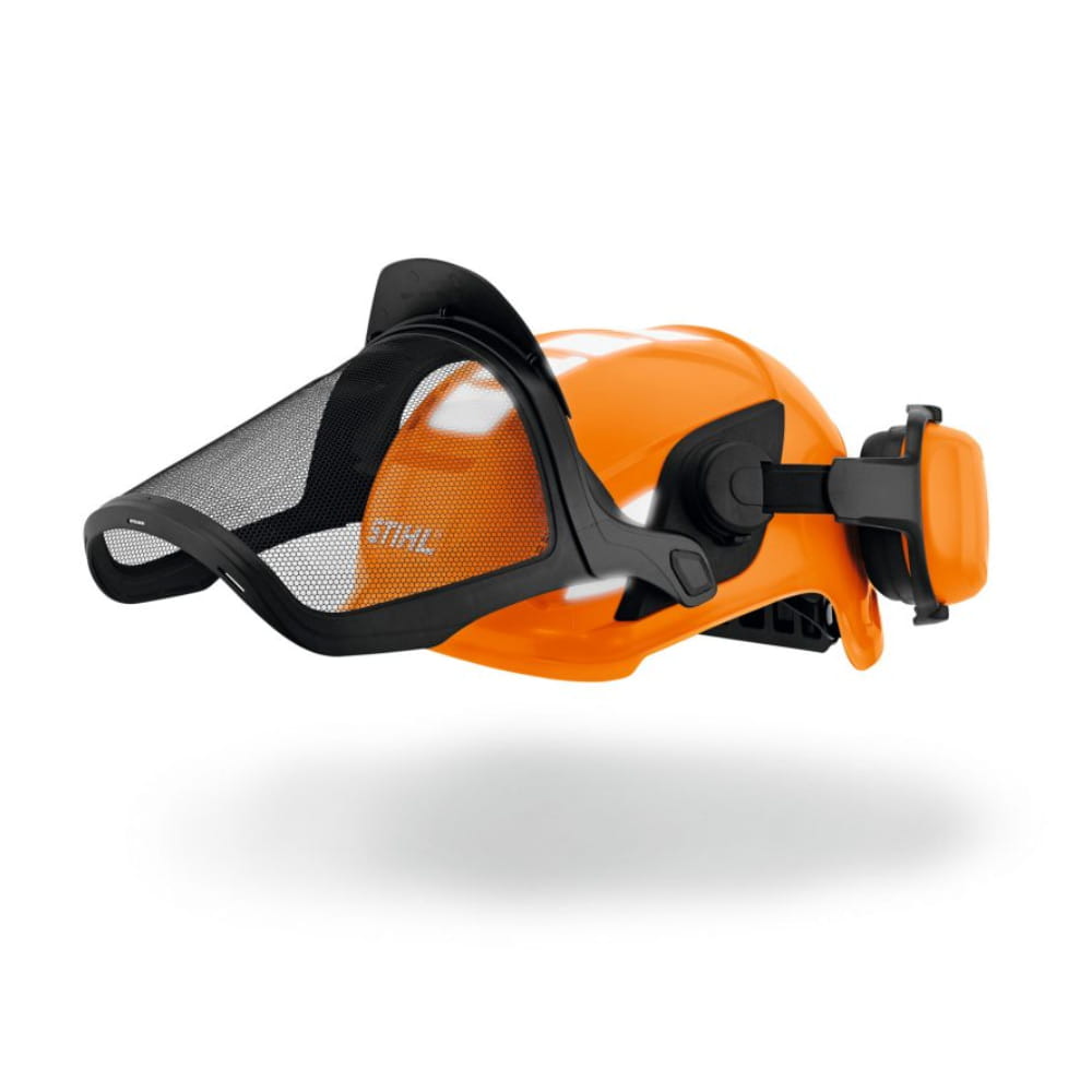 Innowacyjna ochrona głowy z optymalnym wyważeniem. Ochronne zatyczki umieszczone w wąskiej obudowie. Regulowany obwód za pomocą pokrętła, do dopasowania również podczas pracy. Liczne szczeliny rozmieszczone na całej powierzchni hełmu. Krótki daszek nie ograniczający widzenia i pracy. Metalowa siatka z dobrą przepuszczalnością światła. Naklejki ostrzegawcze dookoła hełmu zapewniające zwiększoną widoczność. Elastyczna siatka wizjera chroniąca przed wnikaniem brudu. Indywidualnie regulowana ochrona słuchu. Wysoka przepuszczalność światła Zgodnie z EN 352, EN 397, EN 1731.