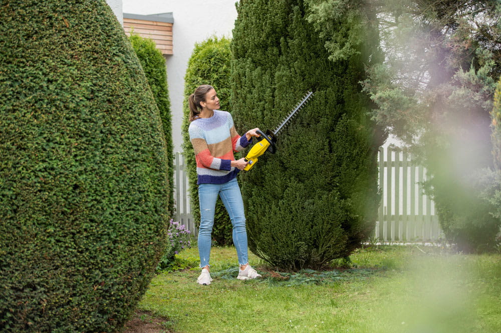 Nożyce do żywopłotu dzięki swej ergonomicznej i lekkiej konstrukcji pozwalają na długą pracę bez odczuwania zmęczenia rąk i ramion. Dodatkowy wygodny i bezpieczny uchwyt z oburęcznym włącznikiem pozwala na wygodne manewrowanie urządzeniem podczas pracy.