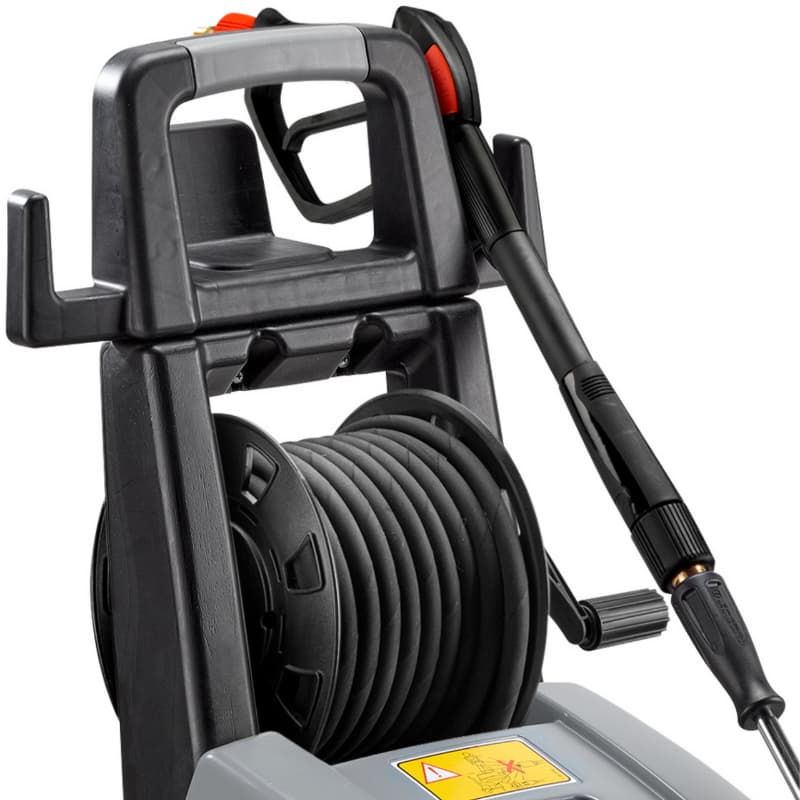 - Bęben na wąż: zapewnia łatwe i szybkie przechowywanie i używanie węża wysokociśnieniowego.