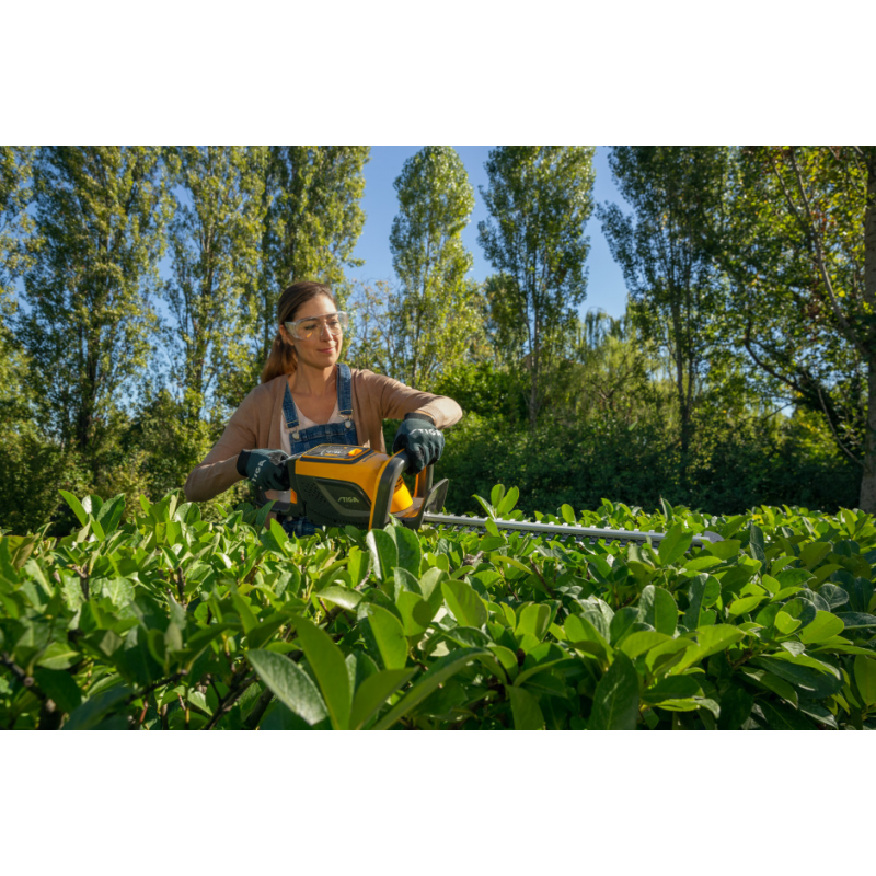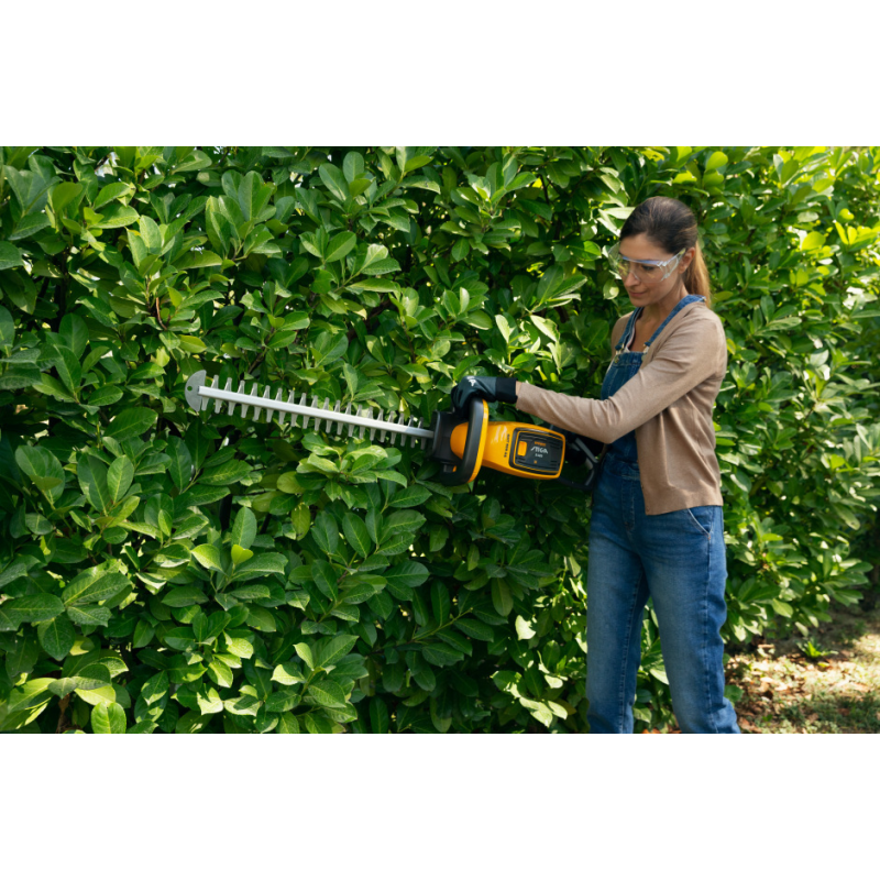 Urządzenie wyposażono w 58-centymetrowy nóż, który z łatwością przycina żywopłoty i krzewy.