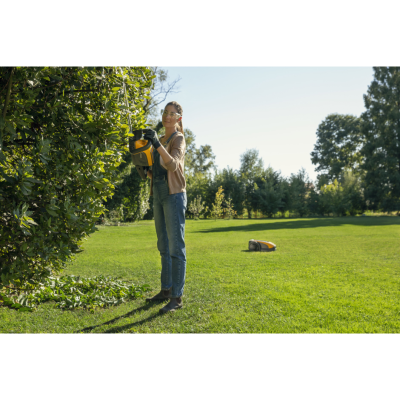 HT 500e to mocny akumulatorowy sekator do żywopłotu, który pozwala na wygodne cięcie bez kabli i oparów benzyny.