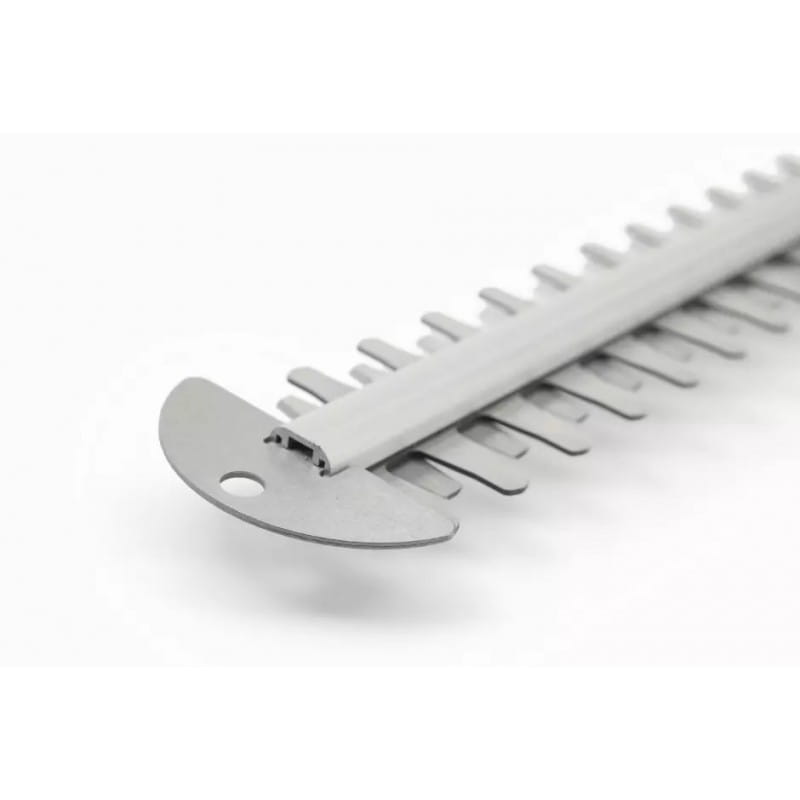 Wycinany laserowo podwójny nóż o długości 58 cm umożliwia szybkie, dokładne cięcie, przerwa między zębami wynosi 27 mm.