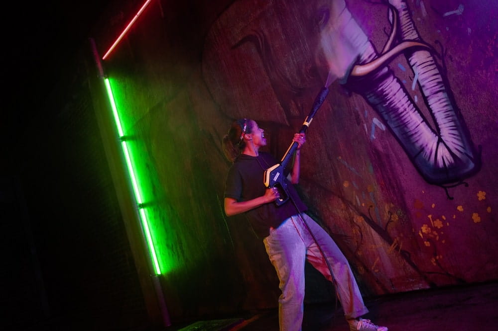 Do myjki dołączono najnowszy pistolet ciśnieniowy, który umożliwia regulacją ciśnienia bezpośrednio z niego. Posiada wbudowany wyświetlacz LED (baterie załączone w zestawie), który pokazuję poziom ciśnienia, jaki aktualnie jest ustawiony w myjce. Możesz swobodnie nim regulować.