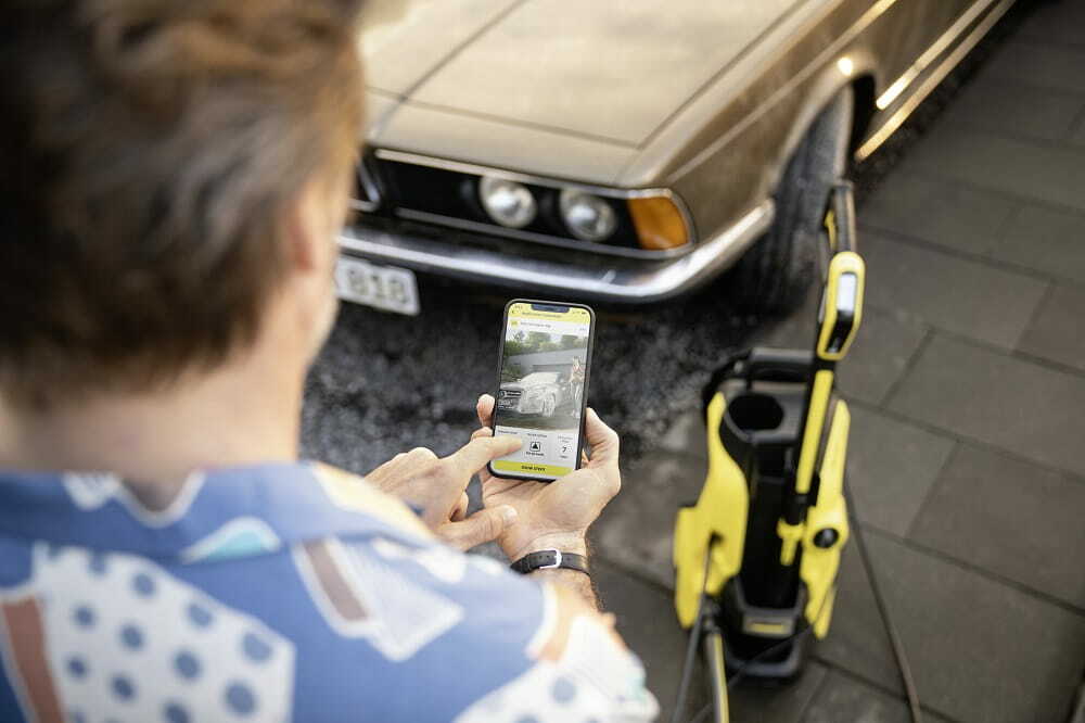 Myjkę można połączyć z aplikacją Kärcher Home & Garden na smartfonie przez Bluetooth. Konsultant mobilny w aplikacji zapewnia praktyczne porady i wskazówki dotyczące wielu sytuacji związanych z czyszczeniem oraz wielu czyszczonych obiektów. Nowa technologia Bluetooth pozwala wybrać w aplikacji rodzaj zabrudzeń do czyszczenia i automatycznie ustawić poziom ciśnienia w pistolecie. Aplikacja ponadto oferuje wiele innych przydatnych funkcji, takich jak instrukcje montażu, konserwacji i pielęgnacji, a także portal Kärcher Service.