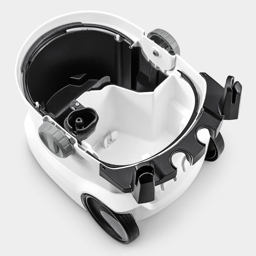 Odkurzacz piorący jest wyposażony w dwa praktyczne zbiorniki: jeden na czystą wodę i środki czyszczące, a drugi na brudną wodę. Zbiornik na czystą wodę przechowuje preparaty do sprzątania, podczas gdy drugi gromadzi zabrudzenia. Oba zbiorniki zostały zaprojektowane z myślą o łatwym i szybkim opróżnianiu, co zwiększa komfort użytkowania i poprawia higienę. Dzięki prostemu systemowi wyjmowania i czyszczenia, przerwy w pracy są minimalne, a efektywność czyszczenia zostaje zwiększona.