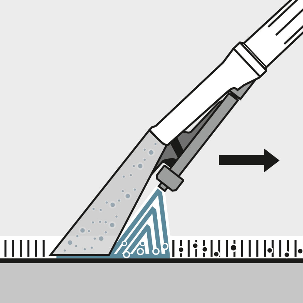Zintegrowany wąż natryskowy pozwala na jednoczesne nanoszenie środka czyszczącego i odsysanie zanieczyszczeń, co sprawia, że proces czyszczenia jest bardziej efektywny i oszczędza czas. Dzięki temu nie ma potrzeby przerywania pracy na osobne aplikowanie detergentu i usuwanie brudu.
