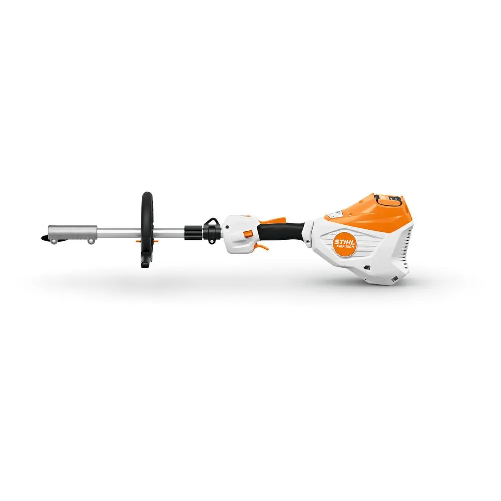 Mocna, lekka akumulatorowa jednostka napędowa KombiMotor o wysokim momencie obrotowym, umożliwiająca cichą i wydajną energetycznie pracę. Uniwersalny charakter dzięki bogatej ofercie KombiNarzędzi STIHL. Wyposażona w komorę na akumulator AP w urządzeniu, bezszczotkowy silnik EC, regulację prędkości i dwa poziomy mocy (Eco i Max), uchwyt obwiedniowy z praktyczną regulacją. Łatwy montaż i demontaż ogranicznika kroku. Boczna blokada dźwigni, obrotowa przelotka. KMA 120 R nie jest kompatybilny z kosą FSB-KM.