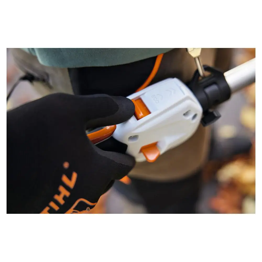 - Bezpośrednie zasilanie urządzenia: Możliwość stosowania akumulatora z systemu STIHL AP włożonego bezpośrednio do obudowy silnika zwiększa mobilność i elastyczność podczas pracy.