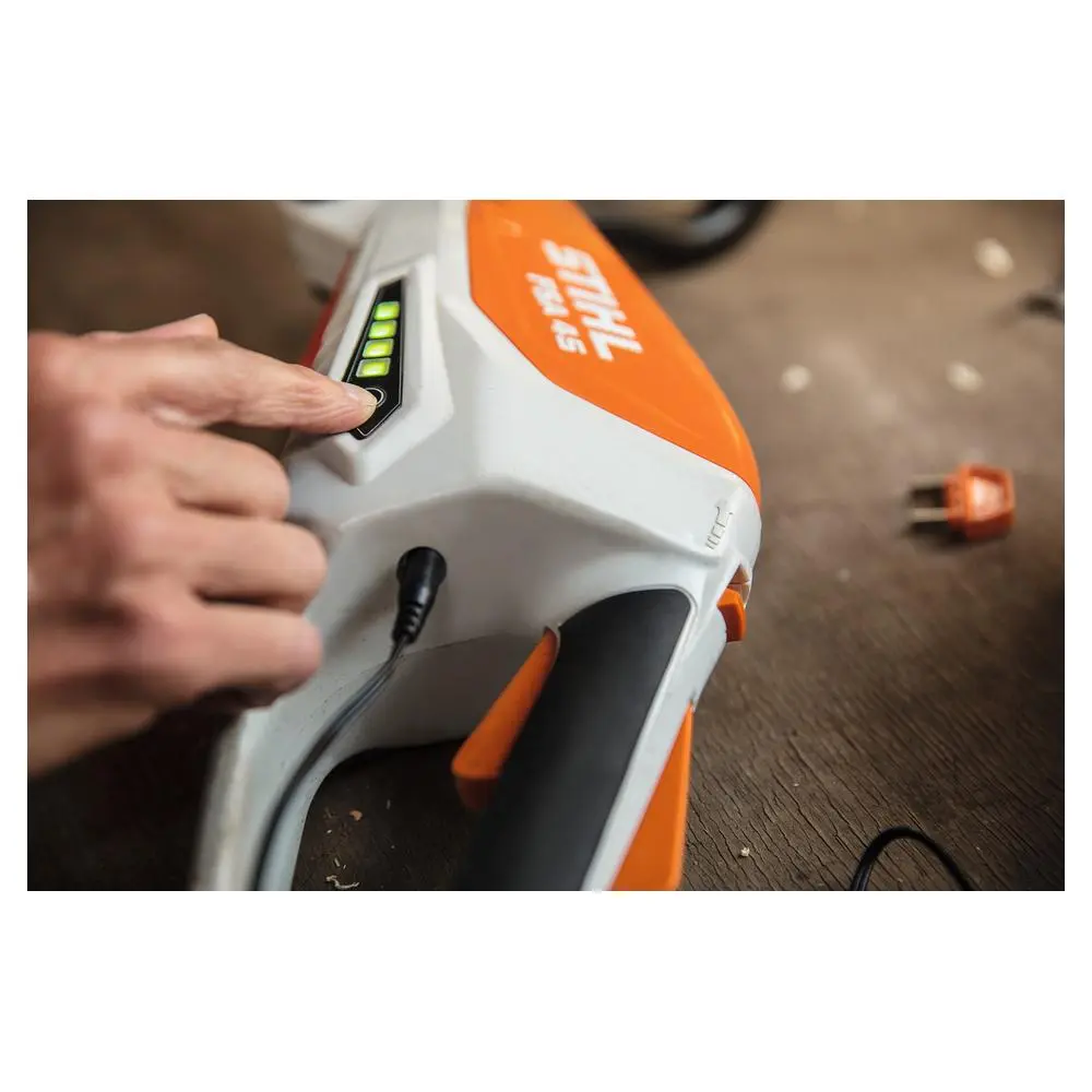 Dzięki inteligentnej elektronice, trymer STIHL BGA 45 pracuje ze stałą mocą, niezależnie od poziomu naładowania akumulatora.