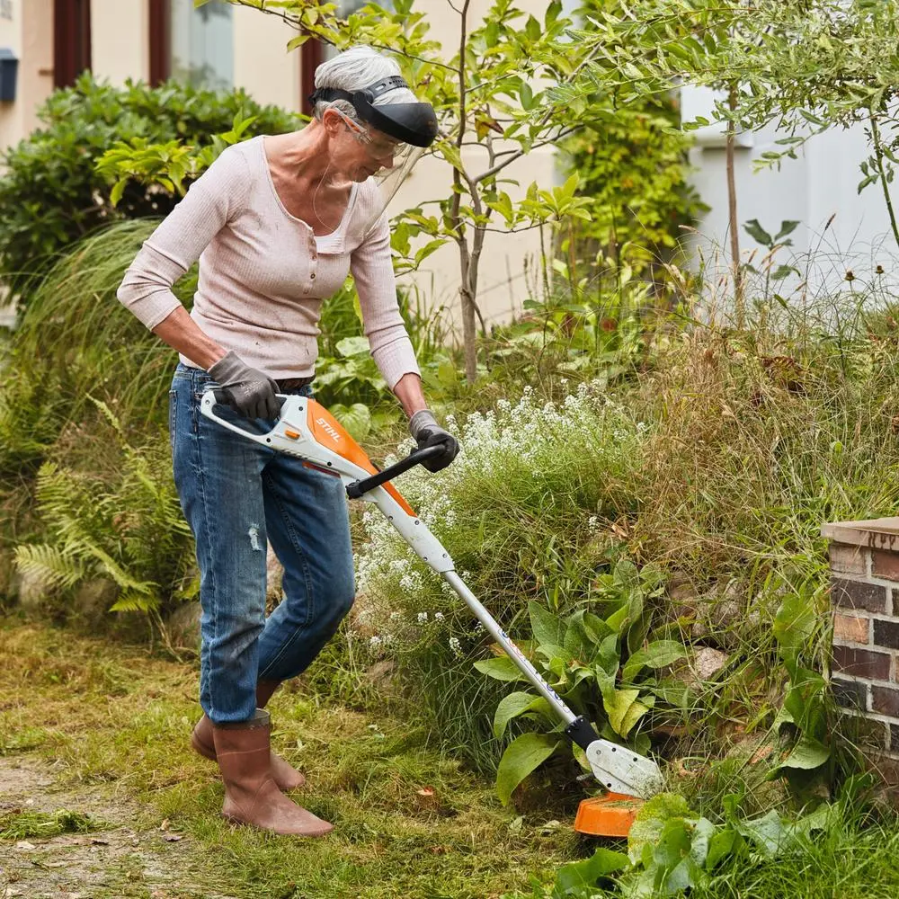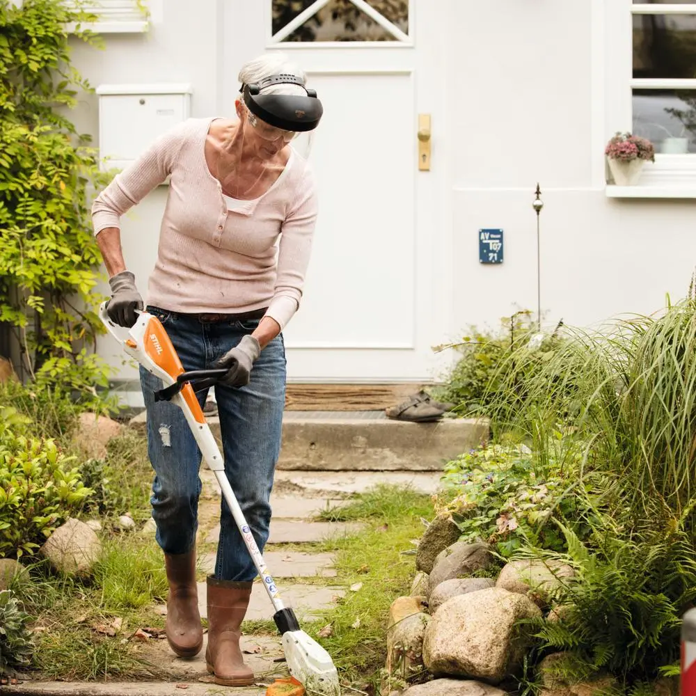 Dzięki uchwytowi obwiedniowemu trymer STIHL BGA 45 jest niezwykle łatwy w manewrowaniu, nawet w ciasnych przestrzeniach, takich jak pomiędzy krzewami czy ławkami w parku. Uchwyt umożliwia precyzyjne prowadzenie urządzenia.