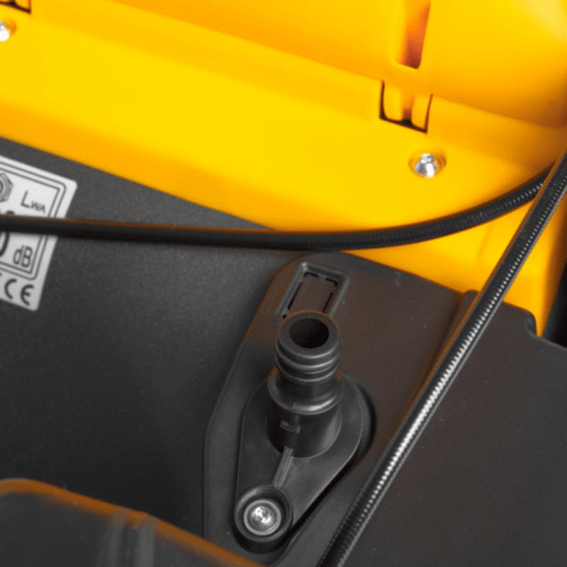 Specjalne złącze do czyszczenia pozwala szybko i efektywnie myć kosiarkę, co jest kluczowe dla utrzymania jej w doskonałym stanie i przedłużenia żywotności. Ta funkcja zapewnia, że możesz łatwo usunąć wszelkie zanieczyszczenia po skończonym koszeniu, co jest szczególnie ważne w utrzymaniu efektywności i higieny urządzenia.