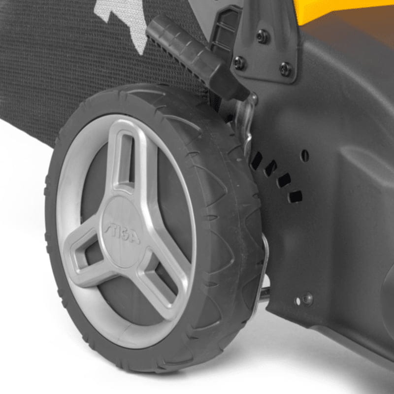 Dzięki wykonaniu z wysokiej jakości stali, korpus kosiarki Combi 50 SQ H jest wyjątkowo wytrzymały, co zapewnia długotrwałą służbę nawet w trudnych warunkach. Stalowa obudowa jest odporna na uszkodzenia mechaniczne, co jest nieocenione przy częstym użytkowaniu na zróżnicowanych terenach.
