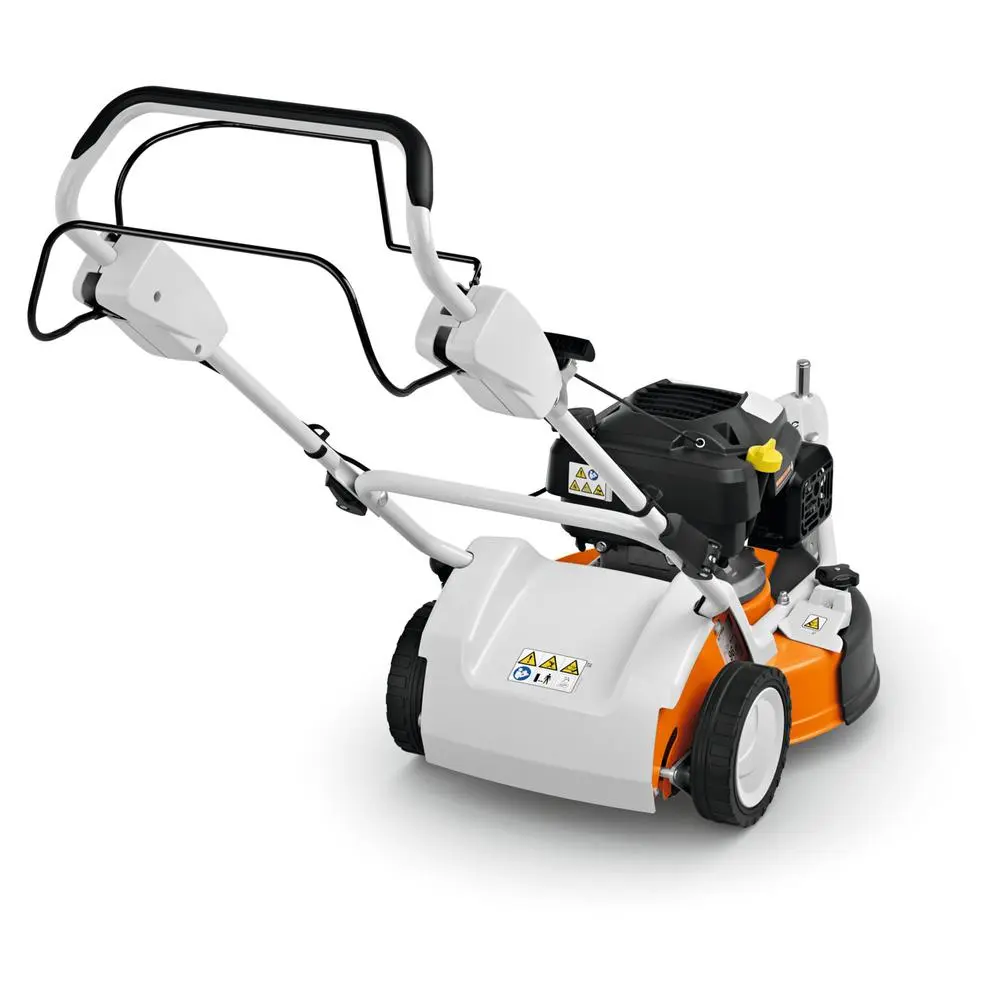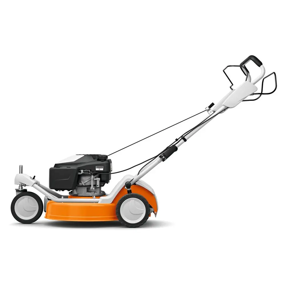 Koła kosiarki STIHL RM 3 RT są łożyskowane, co zapewnia ich płynne i bezwysiłkowe toczenie po trawniku. Specjalny profil bieżnika kół umożliwia łatwe manewrowanie urządzeniem, co przekłada się na wygodę i efektywność pracy. Dzięki temu kosiarka idealnie nadaje się do pracy na większych powierzchniach.