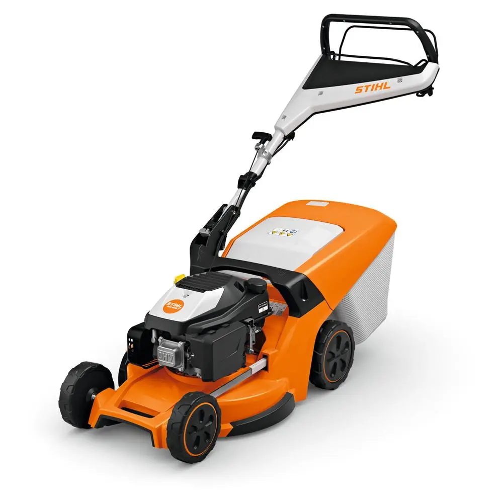 Nasza nowoczesna technologia gwarantuje, że dzięki kosiarce STIHL RM 448 T wymagający użytkownik prywatny może bardzo komfortowo pielęgnować ogrody średniej wielkości. Kosząc trawniki większe lub na zboczach, docenisz 1-biegowy napęd kół. Możesz uruchomić silnik przy minimalnym wysiłku dzięki funkcji łatwego uruchamiania. Standardowe wyposażenie w nóż wielofunkcyjny, zintegrowaną funkcję mulczowania i wyrzut boczny sprawia, że kosiarka nadaje się zarówno do koszenia, jak i mulczowania. Możesz kosić standardowo lub rozprowadzić pokos po trawniku przez wyrzut boczny. Szerokość koszenia 46 cm, lekkobieżne koła i lekka polimerowa obudowa zapewniają wysoką zwrotność. Wygodna kierownica z regulacją wysokości zapewnia komfortowe i ergonomiczne koszenie. Centralnie umieszczona, siedmiostopniowa regulacja wysokości koszenia jest łatwa w obsłudze i umożliwia koszenie na wysokości od 20 mm do 100 mm. Pojemnik na trawę o pojemności 52 l składa się w celu szybkiego i łatwego opróżniania i jest wyposażony we wskaźnik poziomu napełnienia, który pokazuje, kiedy należy opróżnić kosz. To narzędzie spełnia wszystkie wymagania profesjonalistów, oferując najwyższą jakość i niezawodność.