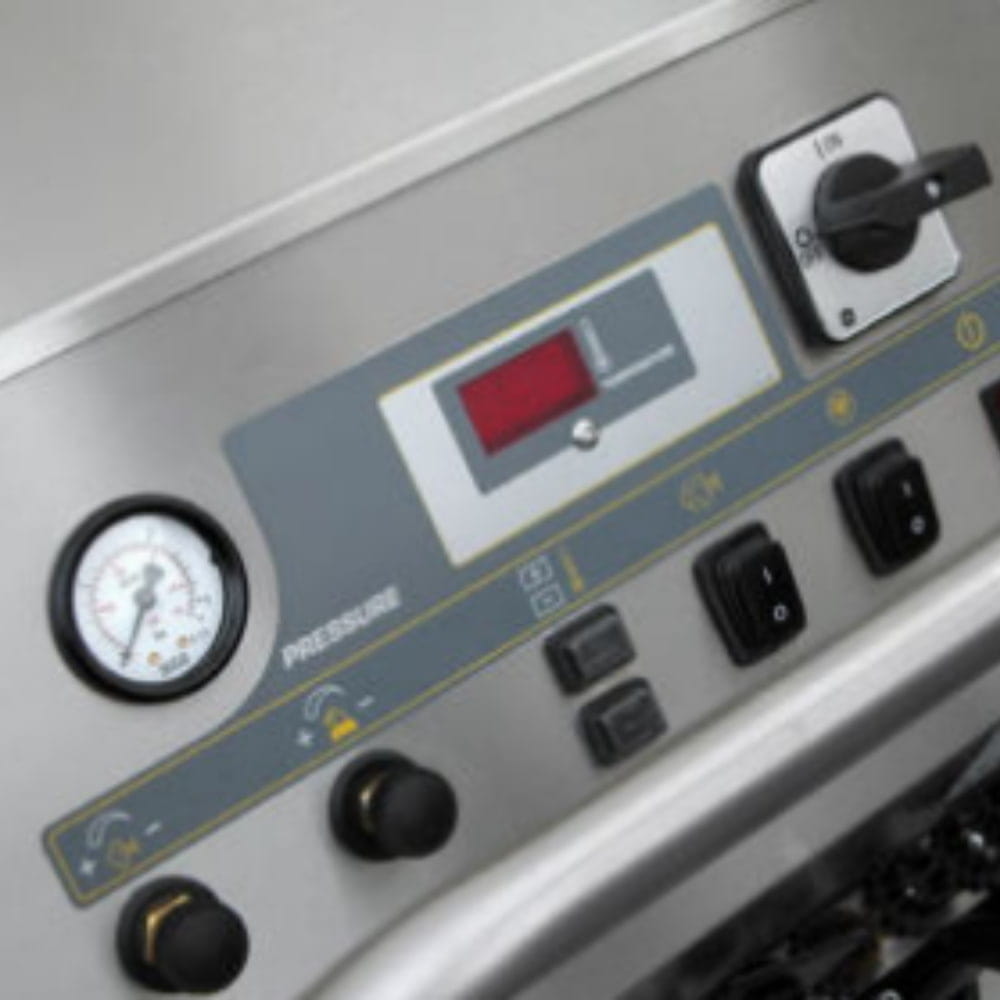 - Generuje parę o ciśnieniu 10 barów i temperaturze 180°C, zapewniając wysoką skuteczność czyszczenia trudnych zabrudzeń w różnych zastosowaniach przemysłowych.