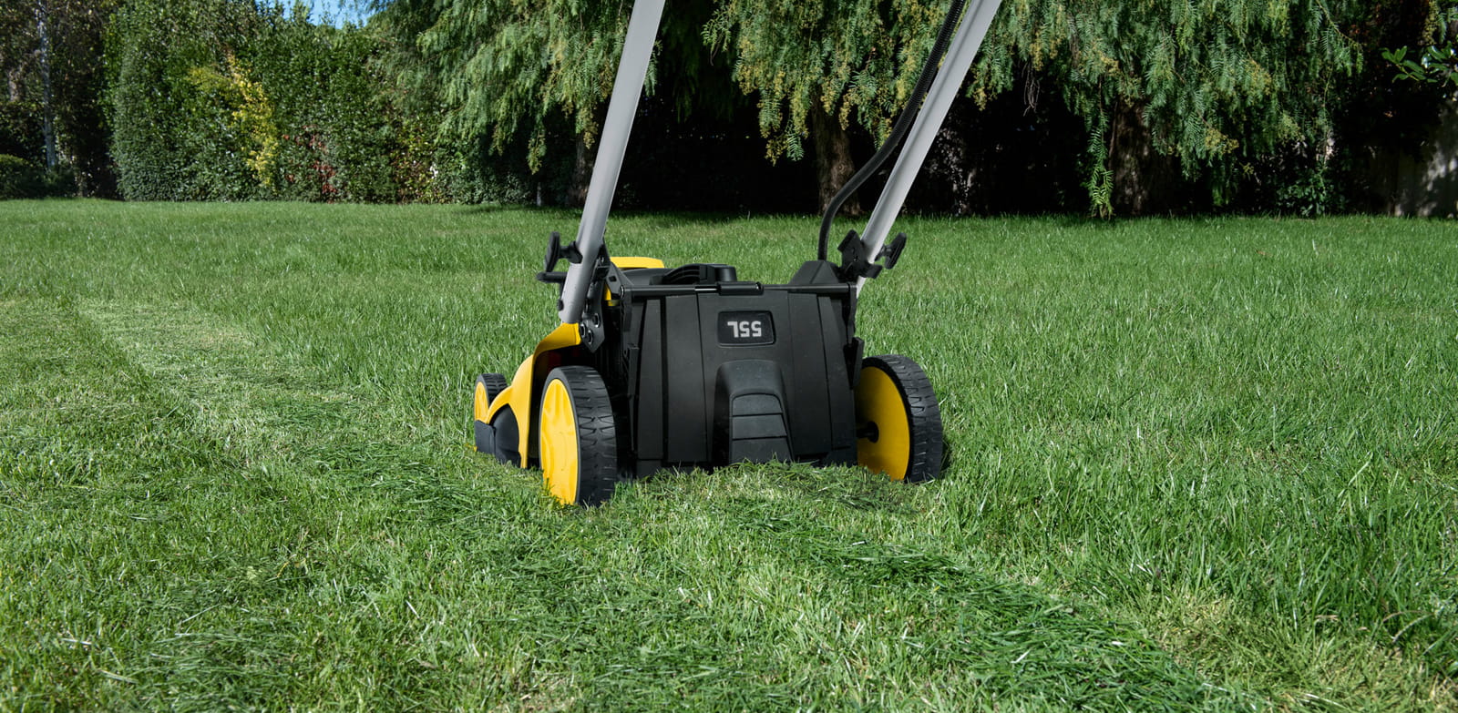 Specjalne grzebienie wyłapują trawę przy obrzeżach. System koszenia 2 w 1 umożliwia zbieranie trawy do pojemnika jak i rozprowadzanie go po trawniku jako naturalny nawóz dzięki wtyczce do mulczowania. Wysokość koszenia może być regulowana na pięciu poziomach od 20 do 70 mm .