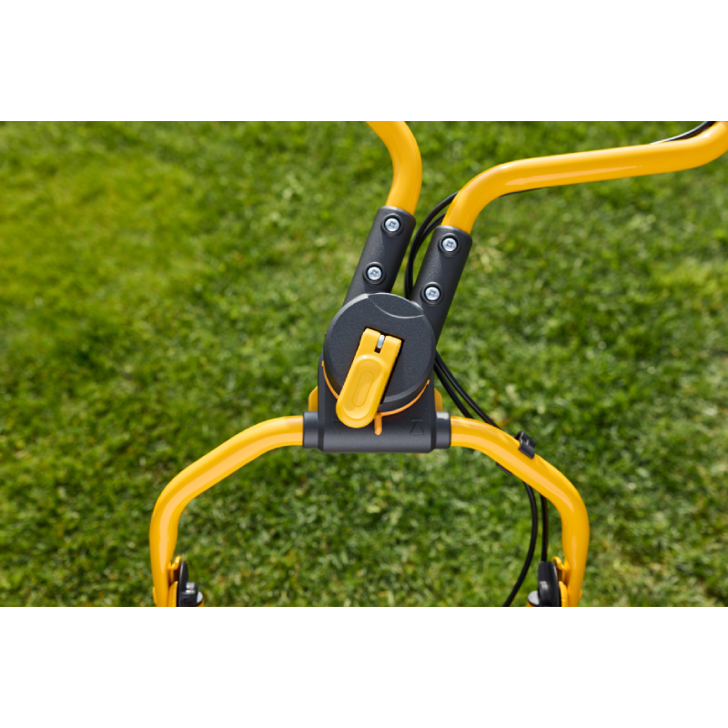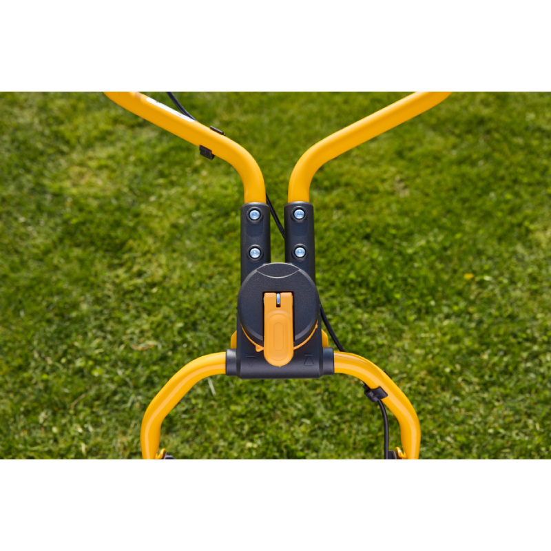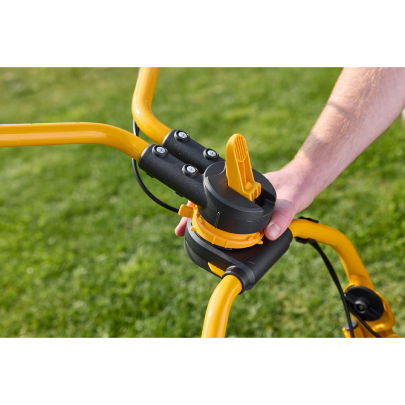 Z kierownicą Fulcrum w prosty sposób możesz złożyć kierownicę. Szybki ruch obrotowy i kosiarka jest gotowa do przechowywania na niewielkiej powierzchni. Ta sama zasada działa w drugą stronę, kierownice w łatwy sposób rozłożysz, by ponownie zacząć prace.
