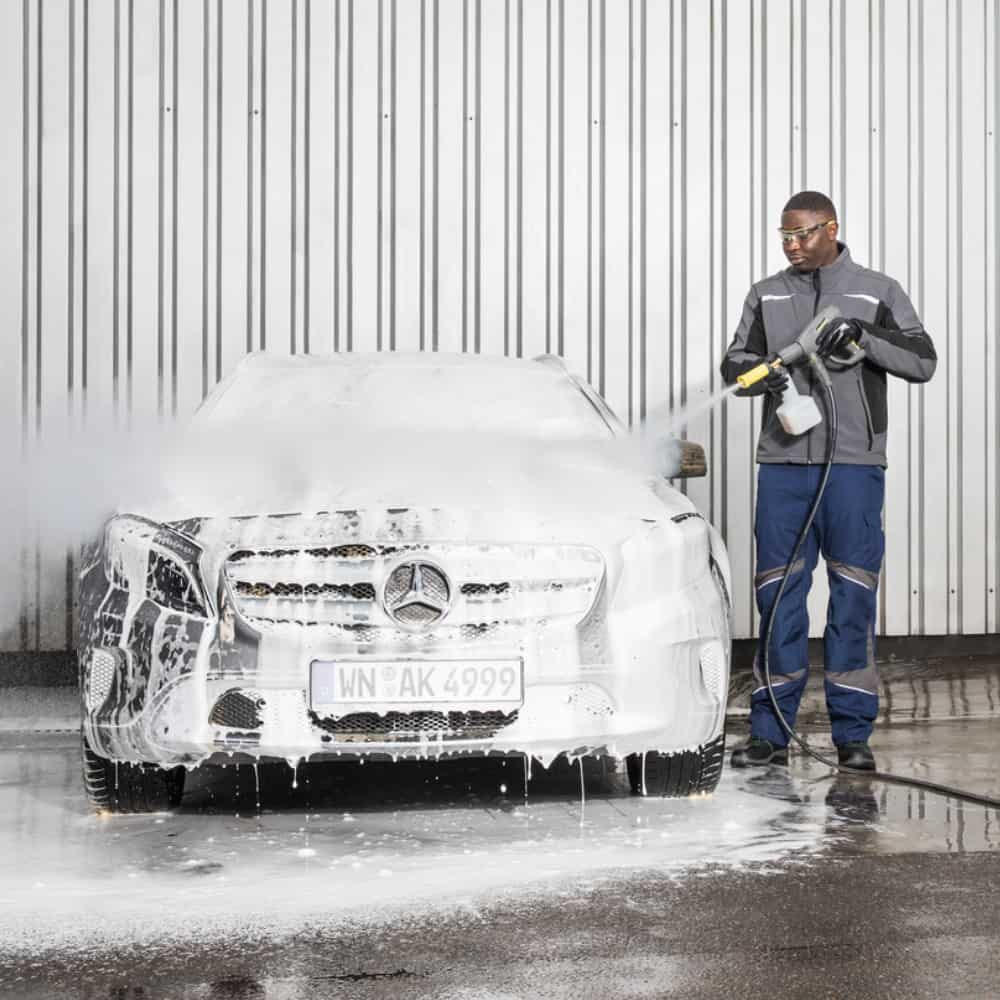 - Przemyślana koncepcja przechowywania akcesoriów: Uchwyty do lancy pianowej i dyszy rotacyjnej, oraz możliwość przechowywania lancy power i urządzenia do czyszczenia powierzchni bezpośrednio w urządzeniu zwiększają wygodę użytkowania.