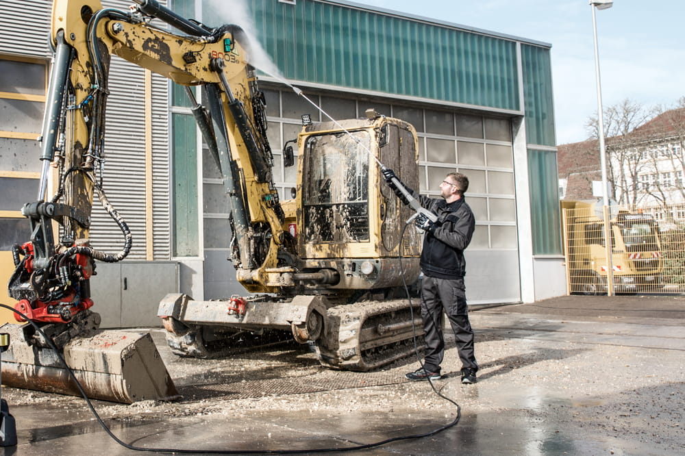 W standardzie pistolet EASY!Force z obrotową lancą (840 mm), wąż wysokociśnieniowy (10 m) i dysza punktowa oraz dysza rotacyjna.
