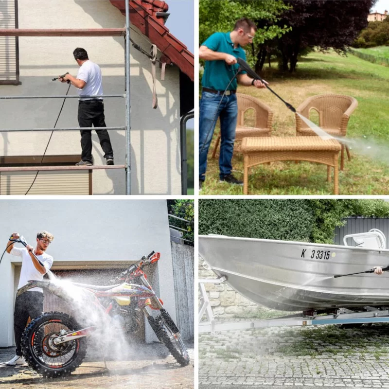 - Zastosowania przemysłowe: Wysokie ciśnienie robocze i możliwość długotrwałej pracy sprawiają, że myjka jest również idealna do profesjonalnych zastosowań w warsztatach i przedsiębiorstwach przemysłowych.