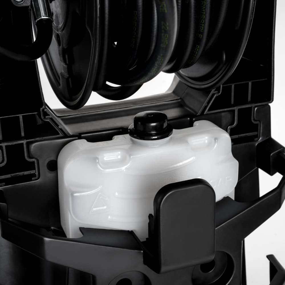 - Bęben na wąż pozwalający na wygodne przechowywanie urządzenia, oszczędzając jednocześnie dużo miejsca.