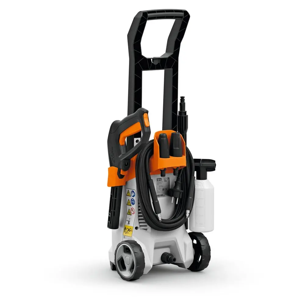 Myjka Stihl RE 80.0 wyposażona jest w dyszę rotacyjną do bardziej uporczywego brudu oraz regulowaną dyszę płaską do czyszczenia wrażliwych powierzchni. Dzięki zestawowi do rozpylania środka czyszczącego, myjka ta sprawdzi się w różnych zastosowaniach, zarówno w ogrodzie, jak i na podwórku.